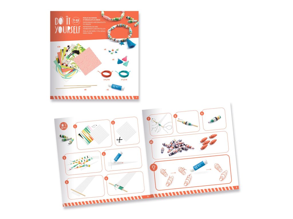 DIY Vyrob si sám Pestré náramky 35 ks Farebná bižutéria na každý deň: vyrob si až 35 náramkov a kombinuj štýly podľa náladyDIY sada na výrobu papierových korálok a viac než 35 pestrých náramkov obsahuje 20 vzorovaných hárkov s líniami na strihanie, z ktorých vznikne viac ako 400 korálok. Prúžky stačí navinúť na paličku, zlepiť a korálky navliecť na elastickú šnúrku. Nechýba ani 12 ozdôb (prívesky, hviezdičky, strapce) a vďaka dostatku materiálu sa môžu tvoriť aj viaceré deti naraz.Rýchly prehľad čo deti vytvoria: až 35 náramkov odporúčaný vek: od 7 rokov rozvíja: jemnú motoriku, trpezlivosť, cit pre farby vhodné: na tvorivé popoludnia, oslavy aj darčekAko sa s tým tvorí Vyber si kombináciu farieb a prvkov. Navliekaj a skladaj podľa vlastného štýlu. Upevnite uzlík/zapínanie a náramok je hotový.Obsah balenia 20× hárok vzorovaného papiera (cca 19 × 19 cm) 6× drevená palička na stáčanie korálok 6× elastická šnúrka (3× modrá, 3× ružová) 6× hviezdičkový prívesok 6× brmbolec 1× lepiaca tyčinka 1× farebný návod (krok za krokom)Technické parametre typ: DIY tvorenie doplnkov počet výsledných náramkov: až 35 ks