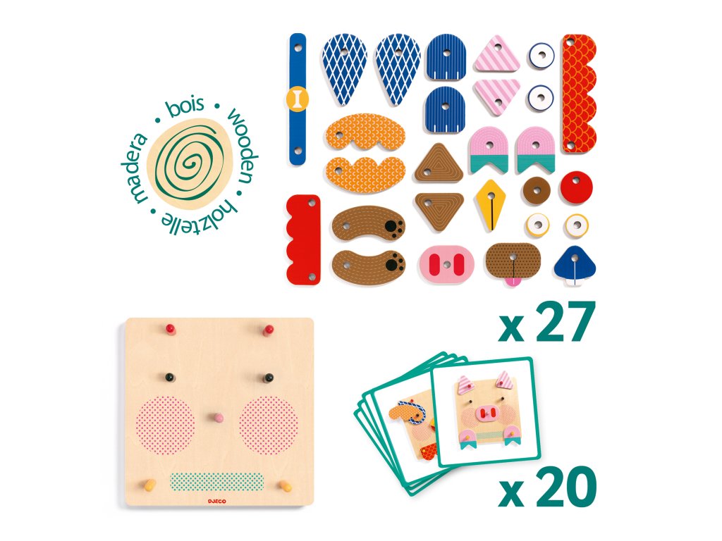 Drevená skladačka CreaFaces Vytvorte zvieraciu tvár: skladanie a vrstvenie dielikovDrevená skladačka CreaFaces je manipulačná skladačka, kde deti podľa predlôh skladajú zvieracie tváričky. Dieliky sa ukladajú na dosku v správnom poradí – a potom môžete tvoriť aj úplne bláznivé kombinácie.Rýchly prehľad odporúčaný vek: od 2 rokov téma: skladanie zvieracích tváričiek podľa predlôh (aj vlastné kombinácie) rozvíja: pozorovanie, triedenie tvarov, vrstvenie, jemnú motoriku a kreativituPrečo si ho deti zamilujú predlohy ponúkajú veľa modelov na napodobnenie otvory na dielikoch pomáhajú s presným umiestnením podporuje vrstvenie, logiku a jemnú motoriku skvelé aj na voľnú hru a vlastnú fantáziuAko sa hrá Vyberte si predlohu a pripravte potrebné dieliky. Ukladajte dieliky na dosku v správnom poradí (vrstvenie). Po zvládnutí predlôh skúste miešať dieliky a vytvárať nové tváre.Obsah balenia 1× drevená doska 27× drevený dielik 10× obojstranná predlohaTechnické parametre materiál: drevo (FSC®) rozmer balenia: cca 21 × 21 × 3 cm