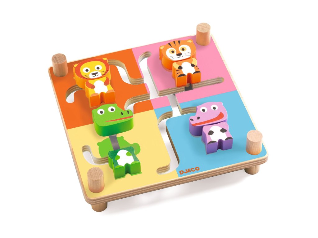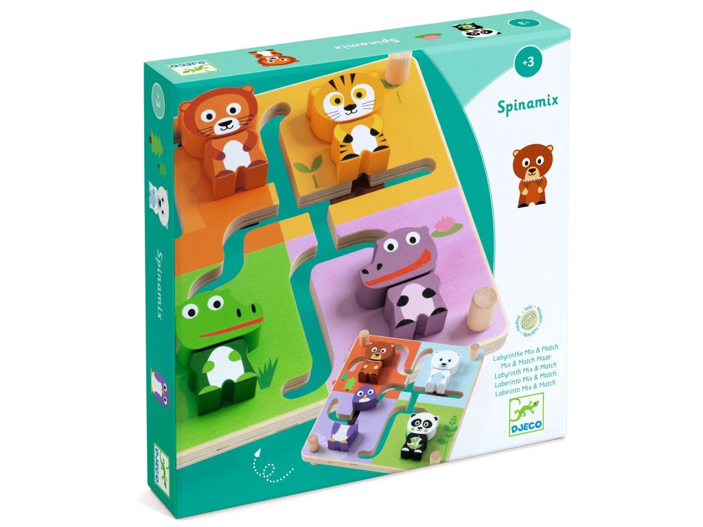 Drevený labyrint Spinamix Posuň, otoč, poskladaj: obojstranný labyrint so zvieratkamiDrevený labyrint Spinamix je drevený posuvný labyrint. Dieťa skladá zvieratká z dvoch častí – keď dokončí jednu stranu, otočí dosku a na druhej strane čakajú ďalšie výzvy.Rýchly prehľad odporúčaný vek: od 3 rokov téma: posuvný labyrint – skladanie zvieratiek z dvoch častí, obojstranne rozvíja: sústredenie, priestorové vnímanie, logiku a jemnú motorikuPrečo si ho deti zamilujú obojstranné spracovanie – viac zvieratiek a dlhšia zábava posuvné dieliky trénujú logiku a priestorové vnímanie jednoduché pravidlo: spoj dve časti zvieratka na správnom mieste pevné drevené prevedenie vhodné na časté hranieAko sa hrá Posúvajte dieliky v labyrinte tak, aby sa spojili dve časti rovnakého zvieratka. Sledujte farebné siluety, ktoré pomáhajú s umiestnením. Po dokončení otočte labyrint a skúste ďalšie zvieratká na druhej strane.Obsah balenia 1× drevený obojstranný labyrint so posuvnými dielikmiTechnické parametre materiál: drevo (FSC®) rozmer balenia: cca 23 × 23 × 4 cm