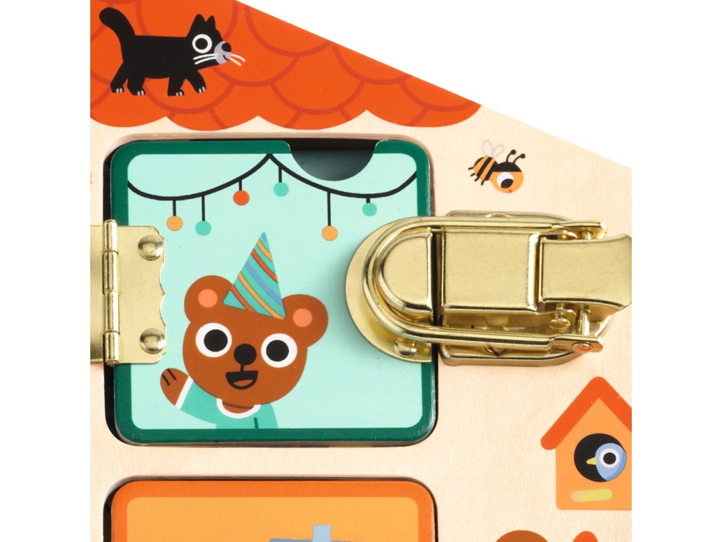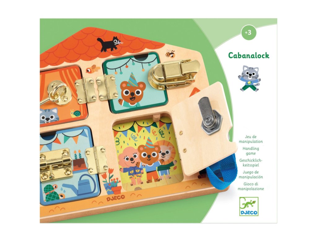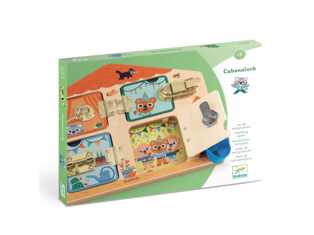 Hra Cabanalock Domček so zámkamiMotorická hra, ktorá deťom otvorí svet objavovania, zručností a radosti z úspechuObjavte čarovný drevený domček so zámkami, ktorý deti nielen zabaví, ale aj podporí v rozvoji dôležitých zručností. Cabanalock je krásne ilustrovaná edukatívna hračka navrhnutá pre malé ručičky, ktoré túžia skúmať, otvárať a objavovať nové zákutia.Domček má 4 rozličné dvierka, z ktorých každé je vybavené iným typom kovového zámku. Pri každom pokuse otvoriť ich si deti precvičujú jemnú motoriku, silu prstov, koordináciu oko–ruka aj logické premýšľanie. Keď sa im podarí dvierka odomknúť, čaká ich odmena – krásne ilustrované izbičky, ktoré skrývajú veselý príbeh o malej oslave.Hra, ktorá rastie spolu s dieťaťomPri hraní s domčekom si deti prirodzene rozvíjajú: