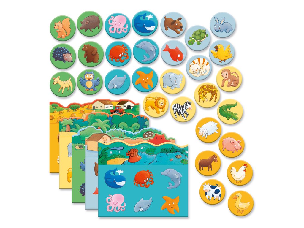 Priraďovacia hra Zvieratká Priraďovanie obrázkov: loto so zvieratkami pre najmenšíchPriraďovacia hra Zvieratká je jednoduchá priraďovacia hra typu loto. Deti ťahajú kartičky a hľadajú zhodný obrázok na svojej doske – ideálne na prvé spoločenské hry.Rýchly prehľad odporúčaný vek: od 2 rokov téma: obrázkové loto – priraďovanie kartičiek na herné dosky rozvíja: slovnú zásobu, pozorovanie, pamäť a triedeniePrečo si ho deti zamilujú jednoduché pravidlá zrozumiteľné už od 2 rokov 5 dosiek a 30 kartičiek – veľa zvieratiek na spoznávanie podporuje slovnú zásobu a schopnosť priraďovať pevné kartónové dieliky vhodné do detských rúkAko sa hrá Každý hráč si vyberie hernú dosku so zvieratkami. Zamiešajte kartičky a ťahajte ich po jednej. Kto má zhodný obrázok, položí kartičku na dosku – vyhráva prvý s plnou doskou.Obsah balenia 5× herná doska 30× kartička so zvieratkamiTechnické parametre materiál: kartón/papier (z udržateľne spravovaných lesov) rozmer balenia: cca 15 × 15 × 15 cm