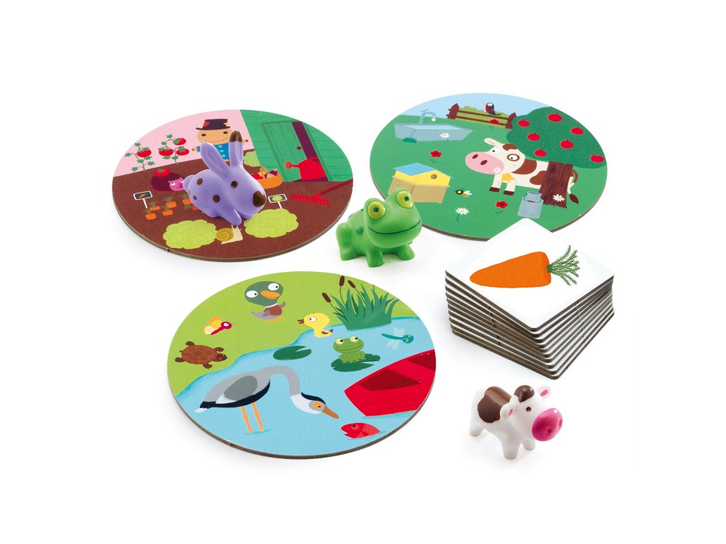 Hra Moje známe prostredia Kde patrí mrkva a kde ryba? Rýchla asociácia prostredí pre najmenšíchHra Moje známe prostredia je prvá spoločenská hra, v ktorej deti priraďujú obrázky k správnemu svetu – zeleninová záhrada, rybník a lúka.Stačí otočiť kartičku a čo najrýchlejšie určiť, ku ktorému prostrediu patrí. Potom dieťa vezme správne zvieratko a položí ho na príslušnú hraciu dosku.Rýchly prehľad odporúčaný vek: 2,5 – 5 rokov počet hráčov: 2 – 4 trvanie hry: približne 10 minút rozvíja: pozorovanie, logické myslenie, rýchlu reakciu, triedenie a slovnú zásobu v balení: 3 zvieratká, 3 hracie dosky, 30 kartičiek, pravidláPrečo si ju deti zamilujú učí cez hru: spoznávanie známych prostredí a vecí, ktoré do nich patria krátke kolá a jednoduché pravidlá – ideálne pre malú detskú pozornosť milé zvieracie figúrky, ktoré sa dobre držia v malých rukách kvalitné spracovanie: hrubý kartón a mäkké plastové figúrky podporuje spoločné hranie a komunikáciu dieťa + dospelýAko sa s tým hrá Do stredu stola položte 3 hracie dosky a pripravte 3 zvieratká. Zamiešajte kartičky a položte ich lícom nadol na kôpku. Otočte kartičku – úlohou je čo najrýchlejšie určiť, ku ktorému prostrediu patrí. Hráč vezme správne zvieratko a položí ho na správnu dosku – za správnu odpoveď získa kartičku. Ak sa pomýli, vráti jednu zo získaných kartičiek (ak už nejakú má).Obsah balenia 3× zvieratko (zajac, žaba, kravička) 3× hracia doska (zeleninová záhrada, rybník, lúka) 30× kartička s prvkami patriacimi k prostrediam 1× návodTechnické parametre typ hry: asociácia / priraďovanie materiál: hrubý kartón, mäkké plastové figúrky certifikácia: papier a kartón z certifikovaných zdrojov (FSC)