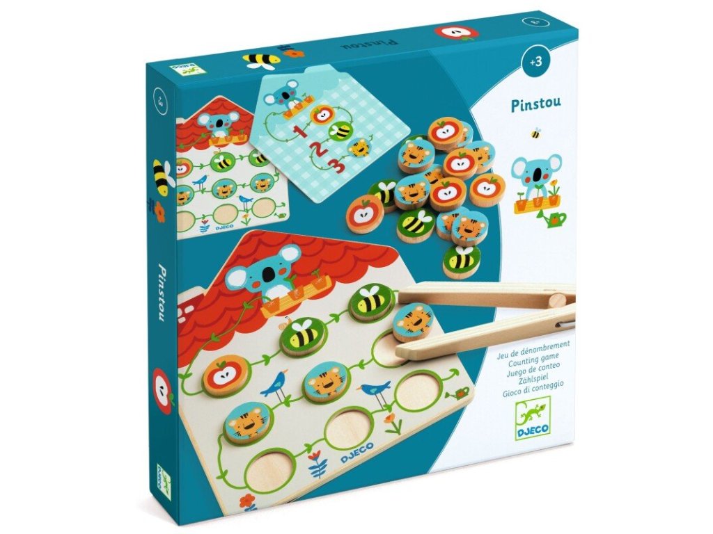 Hra Počítanie s pinzetouZábavný spôsob, ako sa naučiť počítať a posilniť jemnú motorikuTáto krásne spracovaná drevená edukačná hra je ideálnou pomôckou pre deti, ktoré sa začínajú zoznamovať s prvými číslami. Pomocou hravej manipulácie s pinzetou deti plnia jednoduché úlohy a prirodzene si rozvíjajú matematické myslenie aj motorické zručnosti potrebné pre budúce písanie. Dieťa si vyberie kartičku so zadaním – malá koala sediaca na streche domčeka „školy“ ukazuje, koľko žetónov treba vložiť dovnútra. Úloha dieťaťa je potom pomocou drevenej pinzety preniesť správny počet žetónov a uložiť ich do otvoru v domčeku. Na zadnej strane každej kartičky sa nachádza správne riešenie, takže hra umožňuje aj samostatné učenie bez neustálej pomoci dospelého.Čo táto hra rozvíja?Hra Počítanie s pinzetou podporuje viacero kľúčových zručností:
