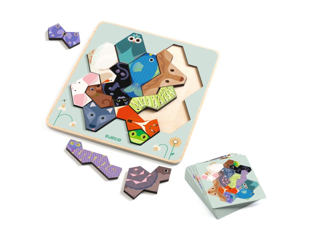 Hra s tvarmi FormAnimoKreatívna logická hra pre deti – skladanie zvieratiek z geometrických tvarovFormAnimo – hra s tvarmi je hravá edukačná hra, ktorá deti zoznamuje so základnými geometrickými tvarmi prostredníctvom skladania veselých zvieratiek. Deti prikladajú farebné drevené dieliky na podložky s predlohami a učia sa tak rozpoznávať tvary, farby a ich vzájomné vzťahy. Hra je navrhnutá tak, aby bola jednoduchá, zrozumiteľná a postupná – dieťa môže pracovať podľa predlohy alebo vytvárať vlastné obrázky podľa fantázie. Ideálna aktivita pre pokojné sústredenie doma, v škôlke alebo v detskom centre.Čo FormAnimo rozvíjarozpoznávanie tvarov a farieblogické myslenie a priestorové vnímaniejemnú motoriku a koordináciu ruka–okosústredenie a trpezlivosťkreativitu a samostatné mysleniePrečo si vybrať FormAnimo od Djecozábavná forma učenia tvarov hroukvalitné drevené dielikyvhodné pre samostatnú aj spoločnú hrujednoduché pravidlá vhodné pre malé detiideálne pre deti od 4 rokovObsah baleniadrevené farebné geometrické tvaryilustrované predlohy so zvieratkamiTu nájdete návod