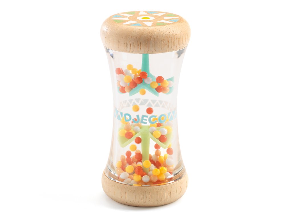 Hrkálka Presýpanie guľôčiek je prvá zvuková hračka pre bábätká, ktorá pripomína malý „batôžtek dažďa“. Stačí ju otočiť alebo jemne zatriasť a farebné guľôčky sa presýpajú cez priehľadnú časť – dieťa ich sleduje očami a zároveň počúva upokojujúci jemný zvuk.