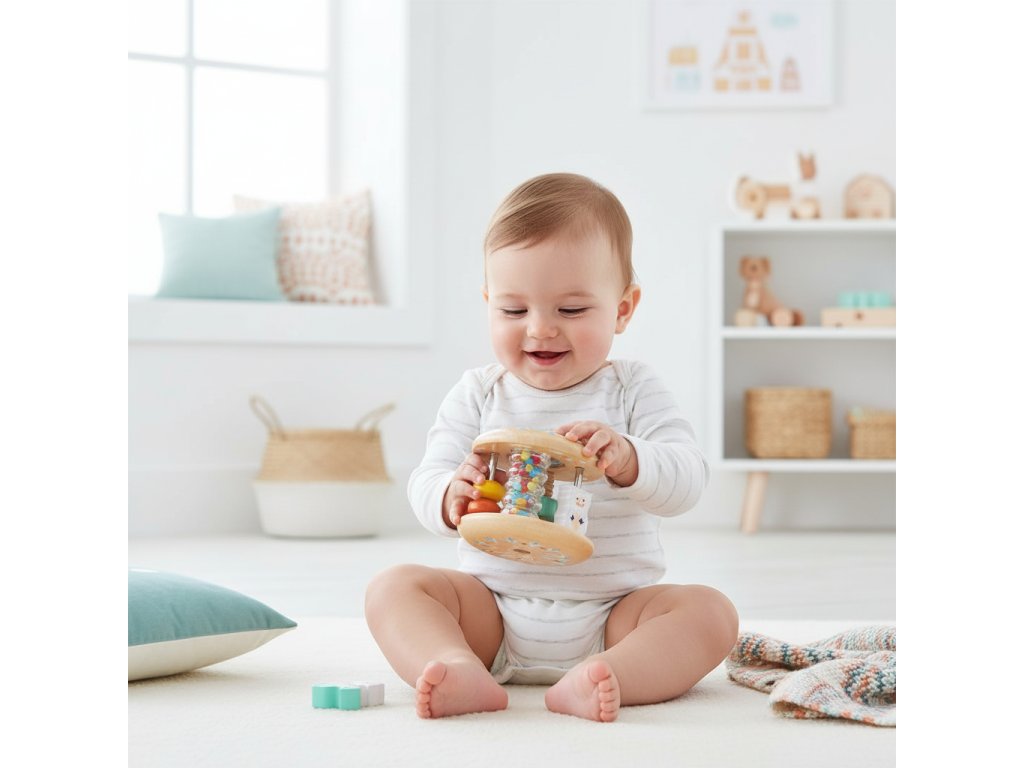 Hrkálka so 6 aktivitami BabyTuttiMultifunkčná rozvojová hračka pre bábätkáBabyTutti – hrkálka so 6 aktivitami je premyslená rozvojová hračka pre bábätká, ktorá podporuje prvé objavovanie sveta prostredníctvom pohybu, dotyku a zvuku. Kombinuje šesť rôznych manipulačných a zmyslových aktivít v jednej hračke, navrhnutej špeciálne pre malé detské rúčky. Dieťa môže hrkálku otáčať, stláčať, posúvať, chytať a skúmať, čím si prirodzene rozvíja jemnú motoriku, koordináciu ruka–oko a zmyslové vnímanie. Jemné zvuky a pohyblivé prvky stimulujú sluch a zrak bez nadmerného preťaženia. Hračka je ideálna pre samostatné hranie doma aj ako prvá edukačná pomôcka pre najmenších.Čo BabyTutti rozvíja:Jemnú motoriku a úchopKoordináciu oko–rukaSluchové a zrakové vnímanieZvedavosť a skúmanieSústredenie pri hrePrečo si vybrať BabyTutti od Djeco:6 rôznych aktivít v jednej hračke (počítadlo, skrutkovanie, vyvažovanie, zrkadlo, dažďová palička, kotúľanie)Prispôsobené malým detským rúčkamPodporuje prirodzený vývin bábätkaBezpečné spracovanie vhodné pre najmenšíchIdeálne ako darček pre bábätkoVhodné pre deti od 10 mesiacov