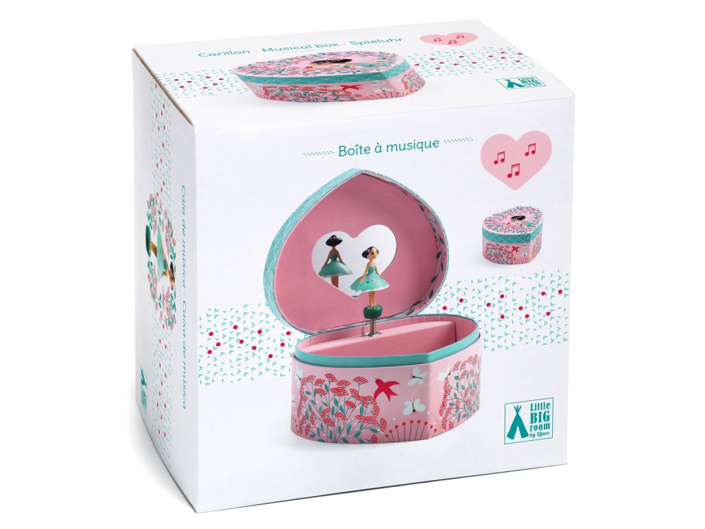 Jarná melódia: hracia skrinkaHudobná drevená skrinka s jemnou melódiou a pohyblivou figúrkouJarná melódia – hracia skrinka je krásna drevená hudobná skrinka od značky Djeco, ktorá pri natiahnutí mechanizmu hrá melódiu Vyzvanie do tanca (C. M. von Weber). Vo vnútri sa pri hre pohybuje figúrka.Prečo si vybrať skrinku od Djecojemná klasická melódia pri natiahnutí (2,5 min.)pohyblivá figúrka vo vnútrikrásny jarný motív – ideálny do detskej izbymôže slúžiť ako šperkovnica či úložný boxObsah baleniadrevená hudobná skrinka s jarným motívomAk chceš, môžem ho rovno preložiť do češtiny a zachovať rovnaký formát. Chceš, aby som to urobil?