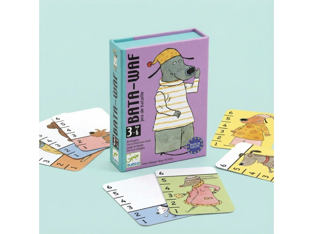 Kartová hra BatawafRýchla, zábavná a taktická hra so psími kartamiBatawaf je svižná a dynamická kartová bojová hra od Djeco. V každom kole obaja hráči vyložia jednu kartu a hráč s vyššou hodnotou karty získa všetky vyložené karty. Hra pokračuje, kým jeden hráč nezíska všetky karty a nestane sa víťazom.Prečo si vybrať túto hru od Djeco:Vhodná pre deti od 6 rokovPre 2 - 4 hráčovIdeálna pre krátke, rýchle partie (10–15 min)Jednoduché pravidlá, ktoré sa naučia aj mladšie detiZábavná bojová mechanika pre dvoch aj viacerých hráčovNádherné ilustrácie psíkov charakteristické pre DjecoKompaktné balenie, vhodné na doma aj na cestyČo hra rozvíja u detí:Rýchle rozhodovanie a reakcieLogické a taktické myslenieSchopnosť predvídať súperove ťahySociálne zručnosti pri hre v skupineSústredenie a pozornosťObsah balenia:Balíček 36 kartičiek s pestrými ilustráciami psíkovPravidlá hryTento dynamický a zábavný titul je skvelou voľbou pre deti, ktoré si chcú vyskúšať rýchle a takticke kartové hry!Tu nájdete návod