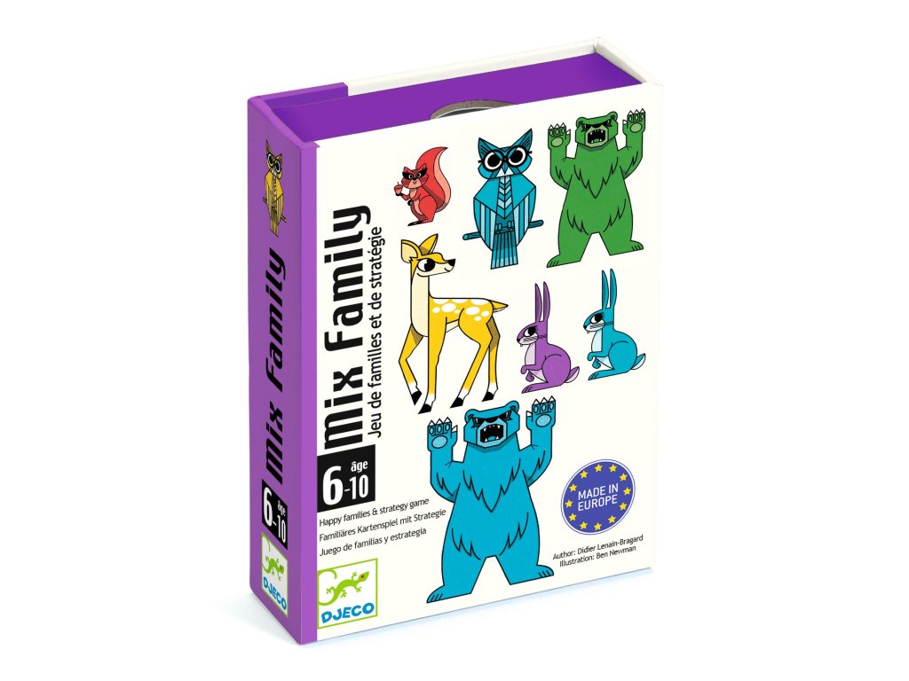 Kartová hra kvarteto Mix rodinky Rodinky naopak: poskladaj trojice podľa farby alebo zvieratkaKartová hra Mix rodinky (Mix Family) je šikovne upravené „kvarteto“, v ktorom však rodinka netvorí štvorica, ale trojica.A pozor – rodinku poskladáš dvoma spôsobmi: buď 3 rôzne zvieratká v rovnakej farbe, alebo 3 rovnaké zvieratká v rôznych farbách.Hráči si karty navzájom pýtajú, sledujú, kto čo zháňa, a vďaka tomu hra prirodzene trénuje postreh, pamäť aj jednoduchú stratégiu.Rýchly prehľad odporúčaný vek: od 6 rokov počet hráčov: 2 – 4 trvanie hry: približne 10 – 15 minút rozvíja: pamäť, sústredenie, triedenie podľa pravidla, strategické uvažovanie, komunikáciu v balení: 36 kariet, pravidláPrečo si ju deti zamilujú jednoduché pravidlá, ale veľa „aha“ momentov – rodinky sa skladajú dvomi spôsobmi rýchle kolá – ideálne na doma aj na cesty nenápadne učí kombinovať a triediť (podľa farby alebo podľa zvieratka) podporuje pamäť a všímavosť – oplatí sa sledovať, kto si čo pýta pevné karty z kvalitného kartónu – vhodné na časté hranieAko sa s tým hrá Zamiešajte karty a rozdajte každému hráčovi 3 karty. Zvyšné karty položte do stredu ako dobierací balíček. Na ťahu si vyberte hráča a vypýtajte si kartu, ktorú potrebujete na dokončenie rodinky. Ak kartu dostanete, pokračujete v pýtaní. Ak nie, potiahnete si z balíčka. Keď vytvoríte rodinku (trojicu), vyložíte ju pred seba. Vyhráva ten, kto ako prvý zostaví dohodnutý počet rodiniek (alebo najviac rodiniek po minutí kariet).Obsah balenia 36× karta 1× pravidlá hryTechnické parametre typ hry: kartová hra / kvarteto (rodinky po 3) materiál: papier, kartón rozmer kariet: približne 7 × 10,5 cm ekológia: papier a kartón z FSC certifikovaných zdrojov