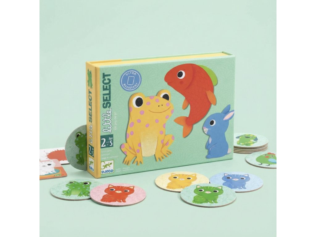 Kartová hra Little SelectZábava a učenie farieb a zvieratiek v jednom baleníObjavte hravú a interaktívnu hru Little Select, ktorá pomáha deťom od 2,5 rokov spoznávať farby a zvieratká hravou formou. Úlohou hráčov je triediť karty podľa farieb alebo druhov zvierat pomocou 22 triediacich kariet a 28 okrúhlych kariet. Hra rozvíja pozorovacie schopnosti, logické myslenie a jemnú motoriku bez toho, aby si deti uvedomovali, že sa učia. Hravé karty a jednoduché pravidlá sú prispôsobené malým deťom, pričom jedno kolo trvá len 10 minút – ideálne pre krátku pozornosť detí. Hra je vhodná na samostatné hranie alebo v skupine 2–4 hráčov a podporuje radosť z učenia aj pri spoločnej hre.Prečo si deti hru zamilujú?