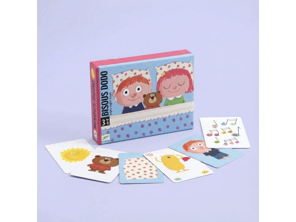 Kartová hra Na dobrú noc je nežná, jednoduchá hra pre najmenších, ktorá sa rýchlo stane obľúbeným večerným rituálom. Dieťa spolu s dospelým postupne „pripraví“ postieľku – hľadá potrebné veci ako vankúšik, plachtu/prikrývku a mojkáčika, aby sa postavička mohla spokojne uložiť spať.