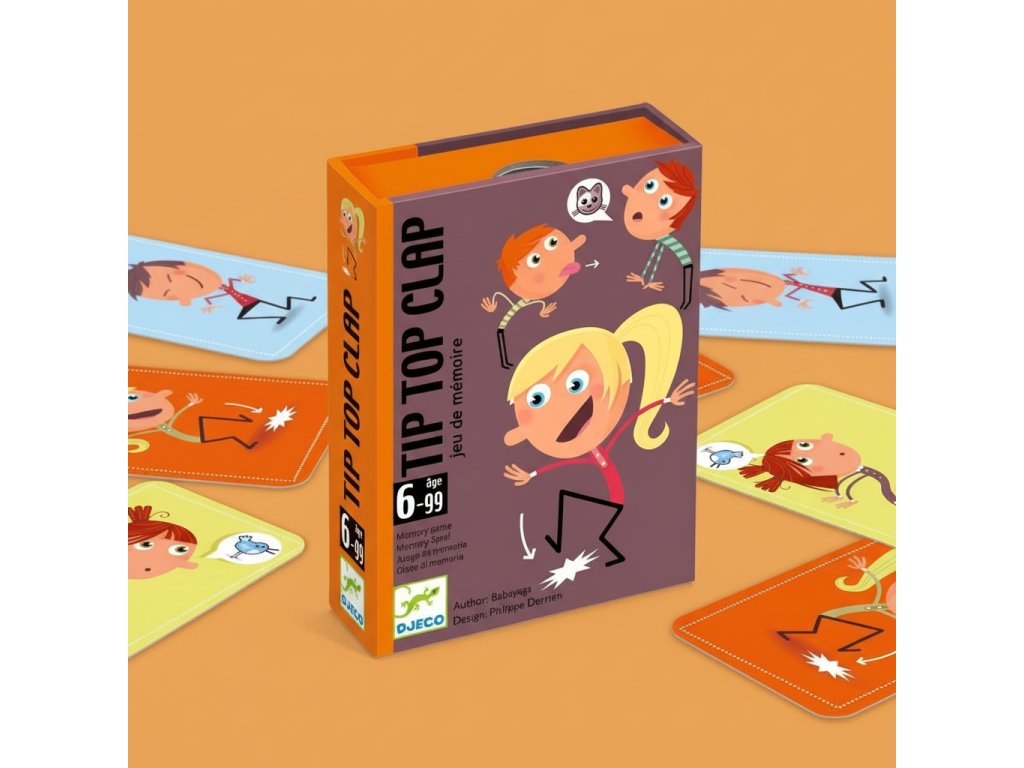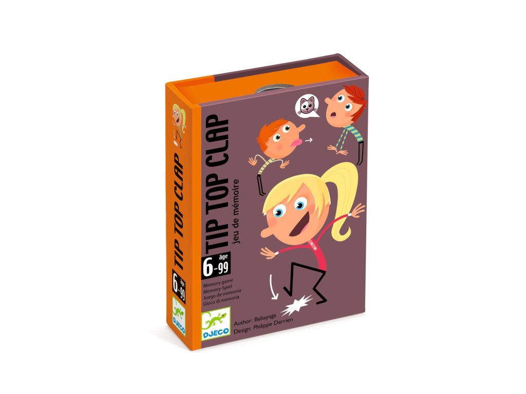 Kartová hra Tip Top Clap Pridávaj zvuky a gestá, kým sa niekto nepomýliTip Top Clap je veselá pamäťová kartová hra, v ktorej hráči vytvárajú stále dlhšiu postupnosť zvukov a pantomímy.Prvý hráč otočí kartu a predvedie, čo je na nej (napr. tlesknutie, dupnutie, žmurknutie). Ďalší hráč pridá svoju kartu, no najskôr musí presne zopakovať všetko, čo bolo predtým.Kto sa pomýli v poradí alebo zabudne, berie trestnú kartu – a na konci vyhráva ten, kto ich má najmenej.Rýchly prehľad odporúčaný vek: od 6 rokov počet hráčov: 2 – 5 trvanie hry: približne 15 minút rozvíja: pamäť, sústredenie, rytmus, rýchlu reakciu, sebakontrolu v balení: 32 kariet, pravidláPrečo si ju deti zamilujú je to „naživo“ – tleskanie, zvuky a grimasy bavia aj hanblivejšie deti krátke kolá a jednoduché pravidlá – ideálne na doma aj na cestovanie stupňuje sa napätie: postupnosť je čoraz dlhšia, a tak rastie aj zábava skvelá pre rodinu – deti často porazia dospelých v rýchlosti aj pozornostiAko sa s tým hrá Zamiešajte karty a položte balíček do stredu lícom nadol. Prvý hráč otočí vrchnú kartu a predvedie akciu zo symbolu. Druhý hráč otočí ďalšiu kartu, najskôr zopakuje akciu(akcie) predchádzajúce a potom pridá svoju. Hra pokračuje – postupnosť sa predlžuje s každou ďalšou kartou. Ak sa hráč pomýli, vezme otočenú kartu ako trestný bod. Vyhráva hráč, ktorý má na konci najmenej trestných kariet.Obsah balenia 32× karta so zvukmi a pantomímou 1× pravidláTechnické parametre typ hry: pamäťová / párty hra so zvukmi a gestami materiál: papier, kartón počet kariet: 32