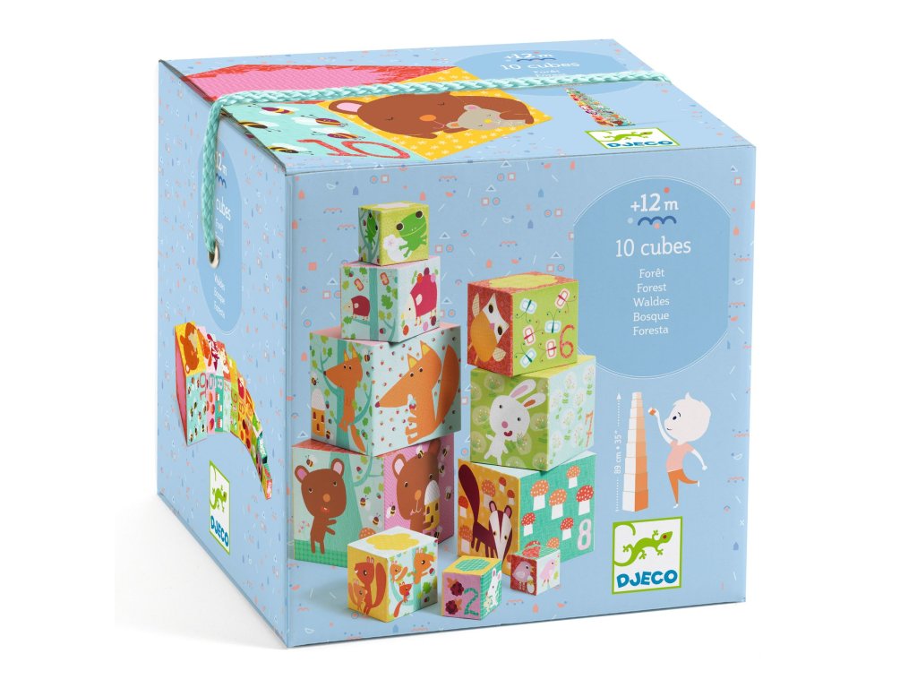 Každá kocka má viac strán s ilustráciami, vďaka čomu sa pri hre stále objavuje niečo nové: lesné zvieratká, jednoduché obrázky a čísla 1–10 na prvé počítanie. Kocky sa po hre dajú vložiť do seba, takže zaberú minimum miesta a upratovanie je rýchle.