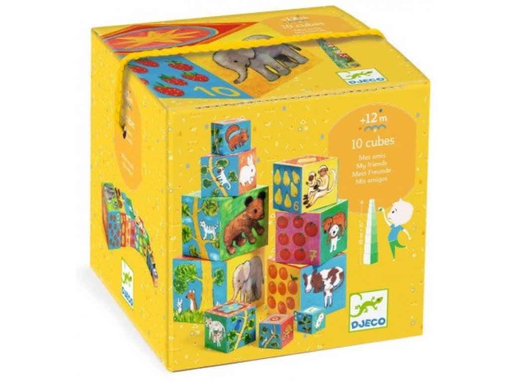 Na stranách kociek deti objavujú zvieratká, obrázky a jednoduché prvky na pozorovanie. Pri stavaní si prirodzene trénujú jemnú motoriku, koordináciu ruka–oko a chápanie veľkostí a poradia. Po hre sa kocky dajú vložiť do seba, takže zaberú minimum miesta.