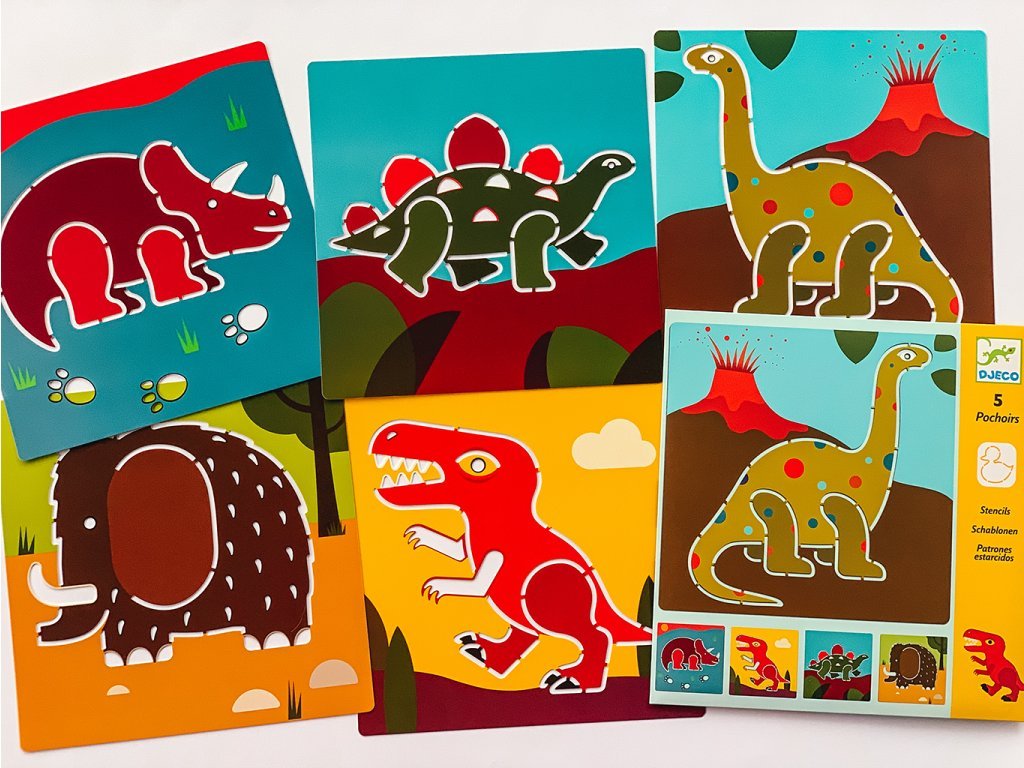 Šablóny sú vyrobené z odolného plastu a majú široké drážky, vďaka ktorým sa s nimi dobre pracuje ceruzkou aj fixkami. Deti môžu motívy opakovane kombinovať, vymýšľať príbehy a skúšať rôzne kompozície – od jedného dinosaura až po celý praveký svet.