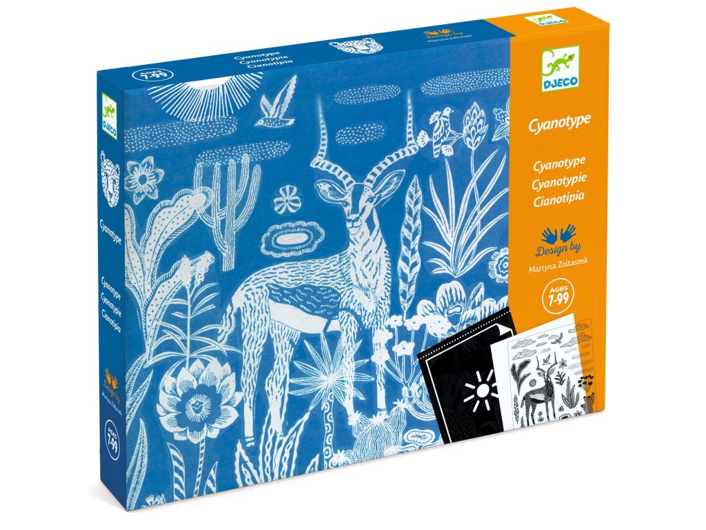 Kyanotypová (fotocitlivá) sada Noc na savaneObjavte čaro svetla a tieňa pomocou fotocitlivej kreatívnej sady pre detiKreatívna sada Noc na savane: Kyanotypová (fotocitlivá) sada od značky Djeco prináša deťom magický zážitok z maľovania svetlom. Tento projekt je založený na fotografickej technike kyanotypii, pri ktorej deti vytvárajú originálne modré obrazy tým, že umiestnia nepriehľadné vzory na fotocitlivý papier a vystavia ho slnečnému svetlu. Po krátkom vystavení slnku sa na papieri objaví negatív, ktorý sa následne zafixuje spláchnutím v čistenej vode – výsledkom sú obrázky s nádherným modrým pozadím, ktoré pripomínajú nočnú savanu.S touto výtvarnou sadou si deti môžu pripraviť:4 umelecké obrazy inšpirované nočnou savanoukaždý obrázok vzniká fotografickou technikou kyanotypie, ktorá reaguje na slnečné svetloTáto kreatívna aktivita je skvelým spôsobom, ako spoznať mechanizmus fungovania svetla a tieňa, pochopiť starú fotografickú techniku hravou formou a vyrobiť jedinečné umelecké diela, ktoré si deti môžu vystaviť alebo darovať.Obsah balenia4 laserom vyrezané rámy8 listov fotocitlivého papiera (21 × 28 cm)127 vzorov tlačených na acetáte1 plexisklová doskailustrovaný návod krok za krokomČo si deti pri tvorení rozvíjajúkreativitu a umelecké cítenie pri tvorbe originálnych obrazovpochopenie svetla a tieňa, čo je základ kreatívnej fotografietrpezlivosť a sústredenie pri práci s postupom krok za krokomlogické a priestorové myslenie pri umiestňovaní vzorovzmysel pre estetiku a farebné vnímanie pri hotových dielachPrečo si vybrať túto kreatívnu sadu od Djecodeti sa učia prostredníctvom zážitkužiadne komplikované chemikálie – všetko funguje pomocou slnečného svetla a vodyvýsledné obrazy sú originálne a jedinečné pre každé dieťavhodné pre deti od 7 rokov a staršie aj dospelých, ktorí chcú tvoriť spolu s deťmikvalitný materiál s ekologickým FSC® papierom