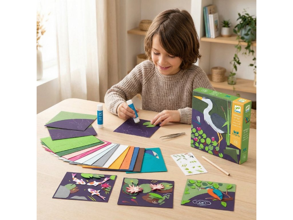 Lepenie 3D obrázkov Pri vode Vytvor 4 reliéfne obrázky pri vode: vrstvi predrezané papiere, pridaj penové podložky a dolaď detaily obtlačkamiLepenie 3D obrázkov Pri vode je papierová kreatívna sada, v ktorej deti skladajú a lepia vrstvy tak, aby vznikol krásny 3D efekt.Pomocou presnej pinzety, lepidla a penových samolepiek postupne prikladajú jemne predrezané dieliky na ilustrované podklady.Na záver pridajú drobné prvky cez obtlačky – výsledkom sú 4 živé scenérie pri vode s rôznymi efektmi (napr. perleťové, metalické či reliéfne papiere).Rýchly prehľad odporúčaný vek: 7–12 rokov rozvíja: jemnú motoriku, presnosť, trpezlivosť, priestorové vnímanie v balení: 4 podklady 20 × 20 cm, predrezané papiere, pinzeta, penové samolepky, lepidlo, obtlačky, ceruzka, ochranné hárky, farebný návodPrečo si ju deti zamilujú vrstvenie vytvára skutočný 3D reliéf, ktorý vyzerá ako malé umelecké dielo predrezané dieliky zjednodušujú prácu – dieťa sa sústredí na skladanie a efekt pinzeta pomáha s maličkými časťami a trénuje presnosť kombinácia papierov s rôznymi povrchmi robí obrázky výrazné a „živé“Ako to funguje Vyber podkladový obrázok a priprav si ochranný hárok na pracovnú plochu. Podľa návodu vyber predrezané dieliky a uchop ich pinzetou. Dieliky lepi postupne – na zvýraznenie reliéfu použi penové samolepky. Na záver pridaj drobné ozdoby pomocou obtlačkov a dolaď detaily ceruzkou.Obsah balenia 4× ilustrovaný podklad (20 × 20 cm) 19× hárok predrezaných papierových dielikov 1× pinzeta (presná) 1× hárok penových samolepiek 1× lepidlo (tuba) 1× hárok obtlačkov 1× ceruzka ochranné hárky 1× farebný návodTechnické parametre materiál: papier / kartón, penové samolepky počet obrázkov: 4 rozmer obrázkov: 20 × 20 cm rozmery balenia: cca 21,5 × 21,5 × 4 cm odporúčaný vek: 7–12 rokov