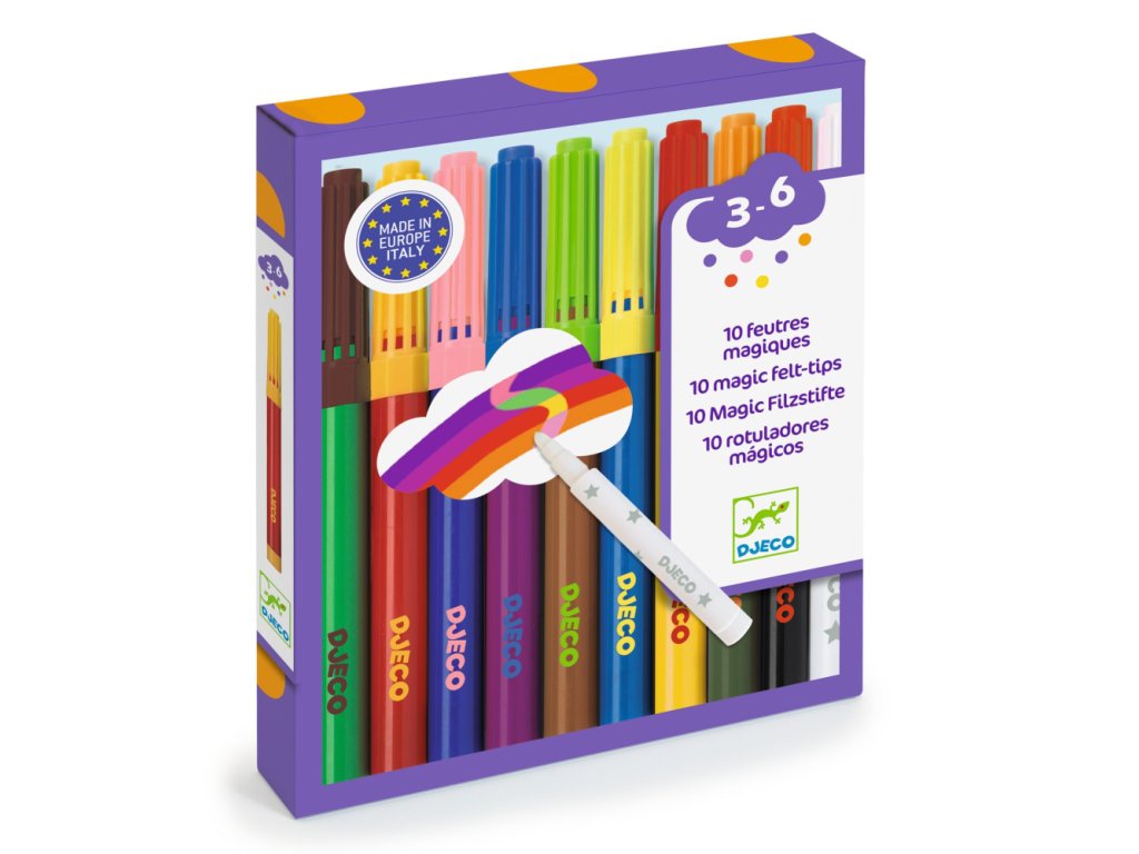 Fixky sú navrhnuté tak, aby sa s nimi dobre pracovalo aj menším deťom. Sú dobre uchopiteľné a atrament je umývateľný, takže tvorenie je pohodové aj doma. Magická fixka je perfektná aj na vzory, prúžky a detaily – deti si vďaka nej rady skúšajú nové nápady a kombinácie.