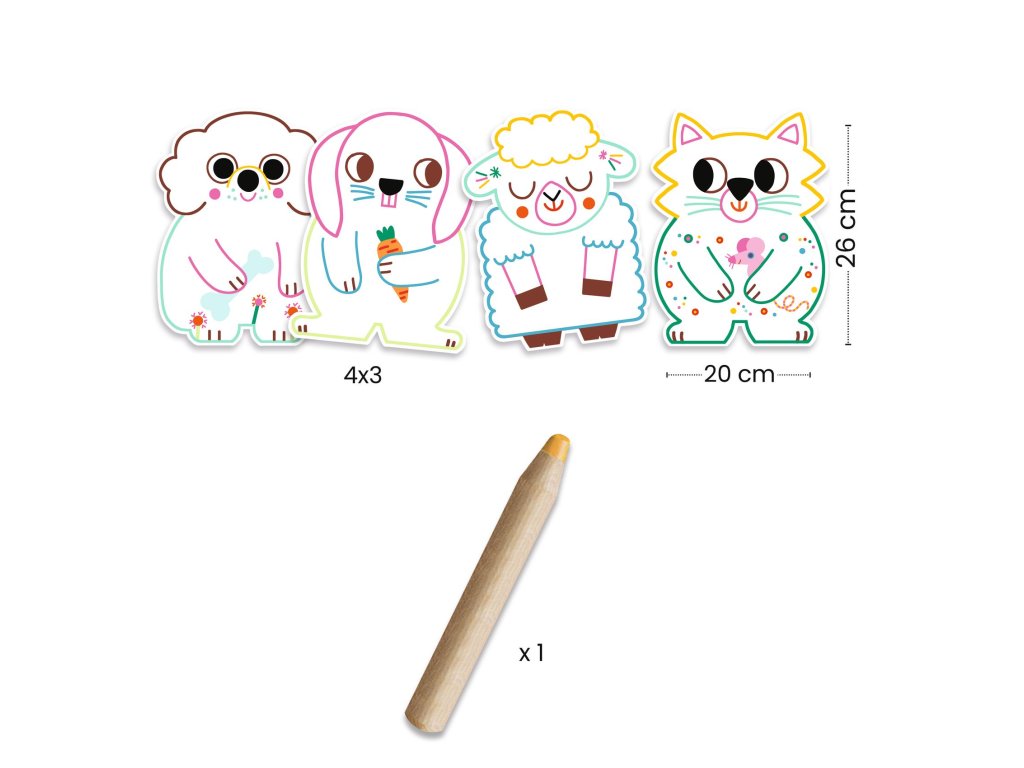 Magické vyfarbovanie farbičkou Domáce zvieratká Čmáraj bez obáv: farbička odhalí len tie správne miesta a obrázok sa „zázračne“ vyfarbíMagické vyfarbovanie farbičkou – Domáce zvieratká je jednoduchá kreatívna aktivita pre najmenších, ktorá povzbudí deti ku kresleniu bez stresu.Dieťa môže pokojne vyfarbovať a čmárať, no farbička zafarbí iba vybrané plochy – a na obrázkoch sa postupne objavia skryté vzory, línie a detaily.Ideálne na prvé „omaľovánky“, keď chceš pekný výsledok aj bez presných ťahov.Rýchly prehľad odporúčaný vek: od 18 mesiacov rozvíja: jemnú motoriku, úchop, koordináciu oko–ruka, prvé kreslenie v balení: 12 siluetových obrázkov, 1 hrubá farbičkaPrečo si ju deti zamilujú magický efekt – vzory sa objavujú až pri vyfarbovaní dieťa má voľnosť – čmára a skúša, no obrázok stále vyzerá pekne hrubá farbička sa dobre drží malými ručičkami motív domácich zvieratiek je blízky – mačička, psík, ovečka, zajačik papier a lepenka sú vyrobené z materiálov so zodpovedným pôvodom (FSC)Ako sa s tým hrá Vyber si zvieratko a polož obrázok na pevný podklad. Chyť hrubú farbičku a vyfarbuj – pokojne aj veľkými ťahmi. Sleduj, ako sa na obrázku odhalia skryté detaily.Obsah balenia 12× siluetový obrázok (domáce zvieratká) 1× hrubá farbička vhodná pre batoliatkaTechnické parametre materiál: papier, lepenka formát obrázkov: približne 20 × 26 cm