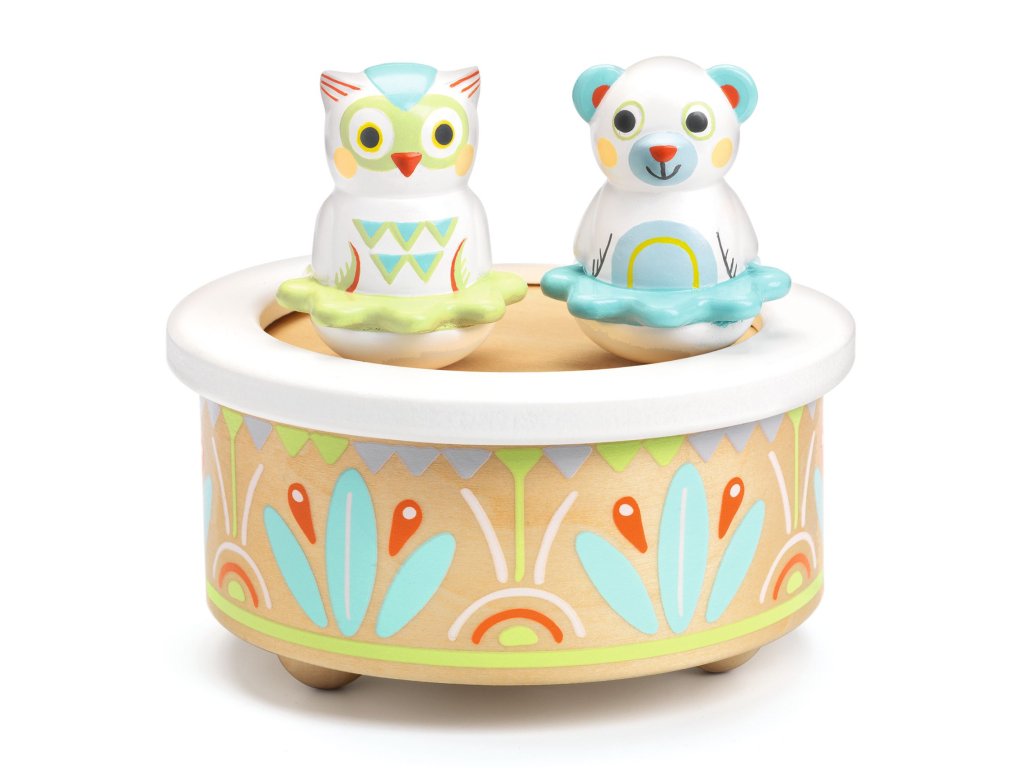 Drevená hracia skrinka Medveď a sova Jemná melódia na dobrú noc: drevená hracia skrinka s motívom medveďa a sovyDrevená hracia skrinka Medveď a sova je krásny doplnok do detskej izby. Po spustení začne hrať jemná uspávanka, ktorá vytvorí pokojné prostredie na zaspávanie a večerný rituál.Rýchly prehľad účel: upokojujúca melódia pred spaním odporúčaný vek: od 12 mesiacov materiál: drevo motív: medveď a sovaAko sa používa Spusť mechanizmus hracej skrinky. Polož ju na bezpečné miesto v izbe. Nechaj melódiu vytvoriť pokojný „čas na spánok“.