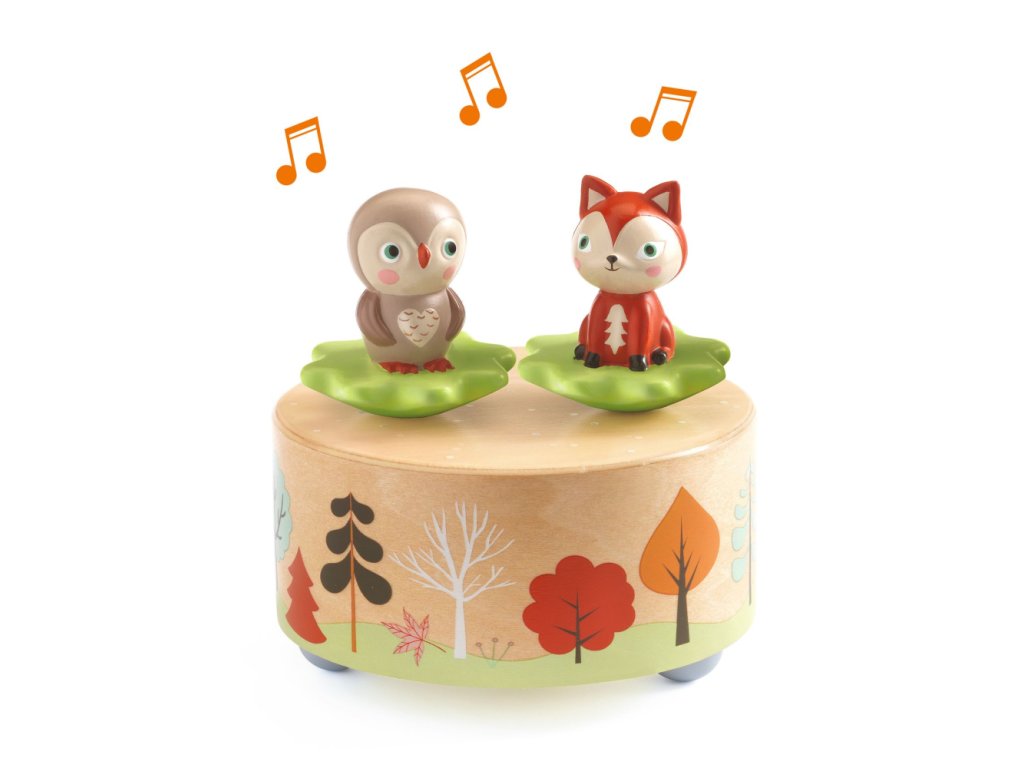 Magnetická hracia skrinka Melódia lesaDrevená hudobná skrinka s otáčajúcimi sa figúrkamiMelódia lesa: magnetická hracia skrinka je krásna drevená hudobná skrinka od Djeco, ktorá hrá jemnú melódiu pri natiahnutí kľúčika. Po spustení hudby sa dve magnetické figúrky — sova a líška — tancujú a otáčajú, čo vytvára upokojujúcu a očarujúcu atmosféru v detskej izbe alebo pri uspávaní. Skrinka je zároveň nádherný dekoratívny doplnok i darček, ktorý deti aj rodičia jednoducho zbožňujú.Prečo si vybrať hraciu skrinku od Djecovhodná pre deti od 12 mesiacovmagnetické figúrky sa točia pri hudbehrá jemnú melódiu približne 2 minúty 30 sekúndkrásny dekoratívny prvok do detskej izbyObsah baleniadrevená hudobná skrinka2 plastové magnetické figúrky (sova a líška)