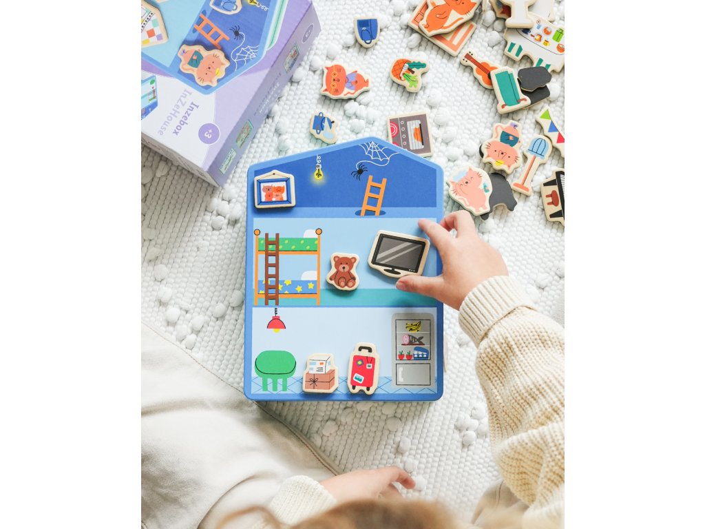 Magnetická hračka InZeBox DomčekMagnetická hračka s drevenými magnetmi – nekonečná zábava pre malé rukyMagnetická hračka Domček INZebox od značky Djeco je hravá a praktická kreatívna hra pre deti. Plechový domček slúži ako magnetická plocha aj úložný box. Deti naň pomocou drevených magnetických dielikov vytvárajú vlastné scénky a príbehy s postavičkami.Prečo si ju deti obľúbia:jednoduchá a hravá magnetická hrapodporuje fantáziu a tvorenie príbehovrozvíja jemnú motoriku a koordináciupraktický formát – hračka aj úložný box v jednomObsah balenia:plechový domček – magnetická plocha40 drevených magnetických dielikov