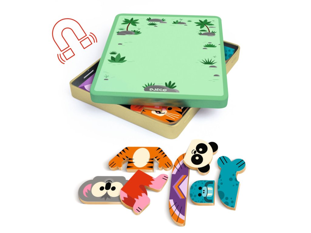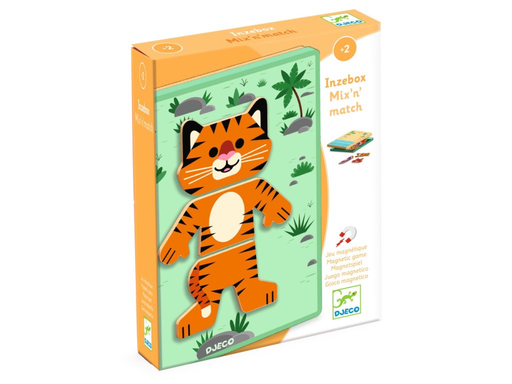 Magnetická hračka InZeBox Mix'n'matchMagnetická mix & match hra so zvieratkami – kreatívne skladanie a zábavaMagnetická hračka InZeBox Mix-n-Match od značky Djeco umožňuje deťom zábavne skladať zvieratká z drevených magnetických dielikov. Spájaním hláv, tiel a nôh vznikajú veselé a netradičné postavičky, ktoré môžu deti donekonečna obmieňať. Kovová krabička slúži zároveň ako magnetická plocha aj úložný box, vďaka čomu je hračka ideálna aj na cesty. Jednoduchá a hravá aktivita rozvíja fantáziu, jemnú motoriku a logické myslenie.Prečo si ju deti obľúbia:jednoduché mix & match skladaniedrevené magnetické dielikyhra bez neporiadku – ideálna na cestovaniepodporuje kreativitu a motorikuObsah balenia:kovová magnetická krabička24 drevených magnetických dielikov6 obojstranných kariet s predlohami