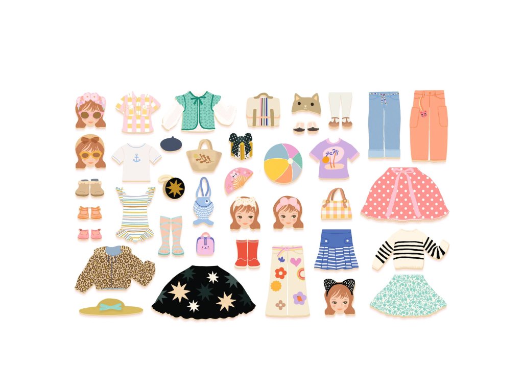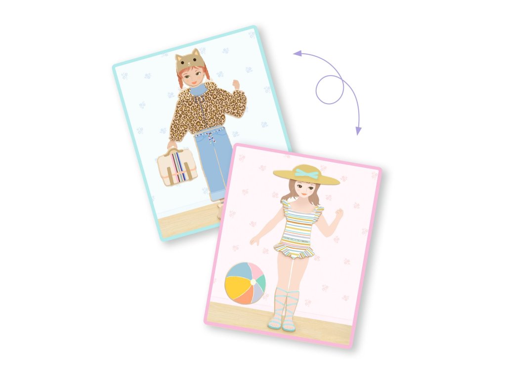 Magnetická skladačka Obliekanie Obliekaj postavičky, kombinuj outfity a vytváraj vlastný štýlMagnetická skladačka Obliekanie je kreatívna magnetická hra, v ktorej deti skladajú postavičky pomocou magnetických dielikov oblečenia. Môžu kombinovať rôzne kúsky šiat, doplnky a štýly – vždy vznikne nový outfit a nová postava.Dieťa si vyberie magnetickú podložku a postupne na ňu prikladá magnety, mení ich poradie a skúša nové kombinácie.Pre koho je vhodná: odporúčaný vek: od 3 rokovObsah balenia magnetická podložka magnetické dieliky oblečenia a doplnkov kartičky s predlohami