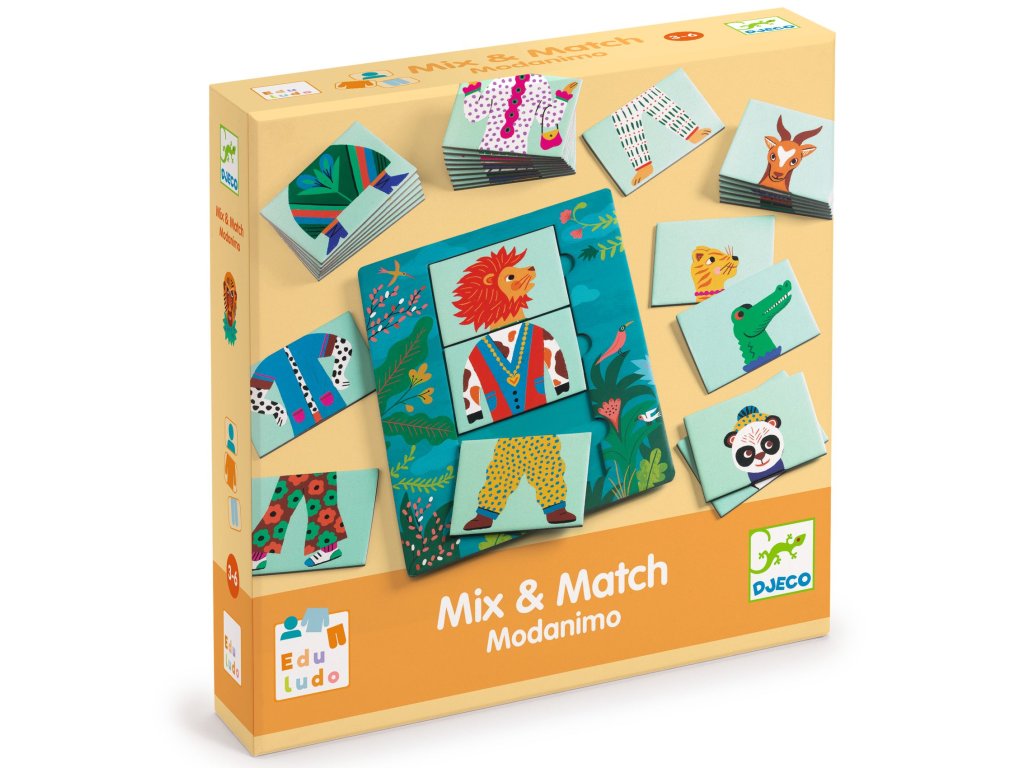 Mix & Match ModanimoHravé skladanie plné farieb, tvarov a fantázieObjavte svet nekonečných kombinácií s hrou Mix & Match Modanimo od Djeco, v ktorej sa učenie prirodzene mení na zábavu. Deti skladajú farebné dieliky, kombinujú tvary a vytvárajú vlastné postavičky, zvieratká či bláznivé bytosti. Každá nová kombinácia podnecuje fantáziu, rozvíja tvorivé myslenie a pozýva deti vymýšľať vlastné príbehy. Hra je intuitívna, hravá a prispôsobená malým detským rukám, takže radosť z tvorenia prichádza úplne prirodzene.Prečo je Mix & Match Modanimo skvelou voľbou:
