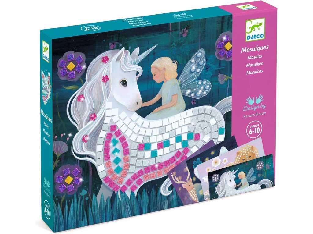Mozaika Kúzelný svetTvorba plná fantázie s jednorožcami a vílamiVstúpte do kúzelného sveta jednorožcov a víl! Kreatívna sada Mozaika Kúzelný svet umožňuje deťom vytvoriť 4 trblietavé obrázky pomocou samolepiacich penových štvorčekov a lesklých kamienkov. Vďaka princípu tvorenia podľa čísiel vie dieťa presne, kam ktorý dielik patrí, a výsledkom sú farebné a fantastické mozaiky, ktoré si môže hrdě vystaviť. Tvorenie zároveň rozvíja jemnú motoriku, koncentráciu a zmysel pre detail, pričom deti zažívajú radosť z vlastnoručne dokončeného diela.Obsah sady: