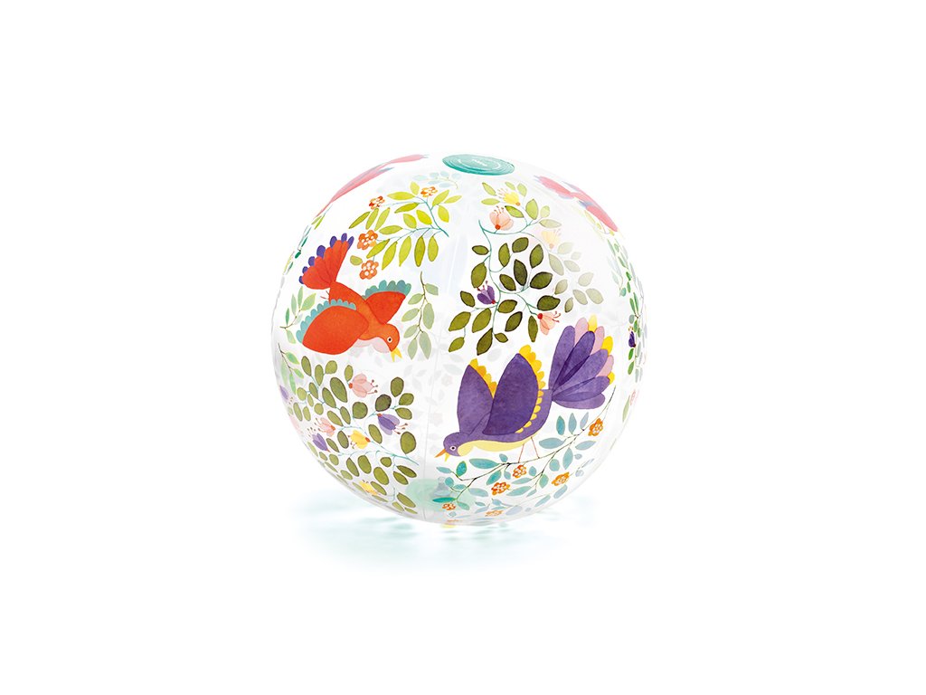 Nafukovacia lopta s motívom vtáčikov, kvetov a lístkov je skvelý doplnok na letné dni. Vďaka veľkému rozmeru sa deťom dobre chytá, ľahko sa odráža a povzbudzuje ich k prirodzenému pohybu – doma, vonku aj na dovolenke.