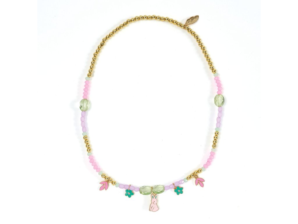 Náhrdelník Camélia Šperk pre deti: korálky a prívesky, ktoré sa ľahko navliekajúNáhrdelník Camélia je detský náhrdelník z akrylových korálok, doplnený o päť smaltovaných príveskov (zajačik, kvietky a listy) a zlatého detailu. Vďaka dvojitej elastickej niti sa ľahko nasadzuje a netreba zapínanie.Rýchly prehľad odporúčaný vek: od 3 rokov rozmer: priemer náhrdelníka cca 11 cm zapínanie: bez zapínania (elastická niť)Obsah balenia 1× náhrdelník