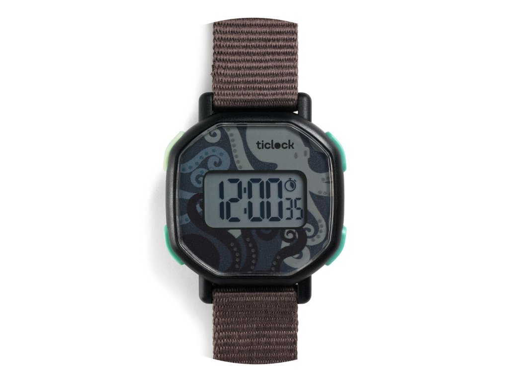 Djeco Náramkové digitálne hodinky Ticlock: Čierna chobotnica