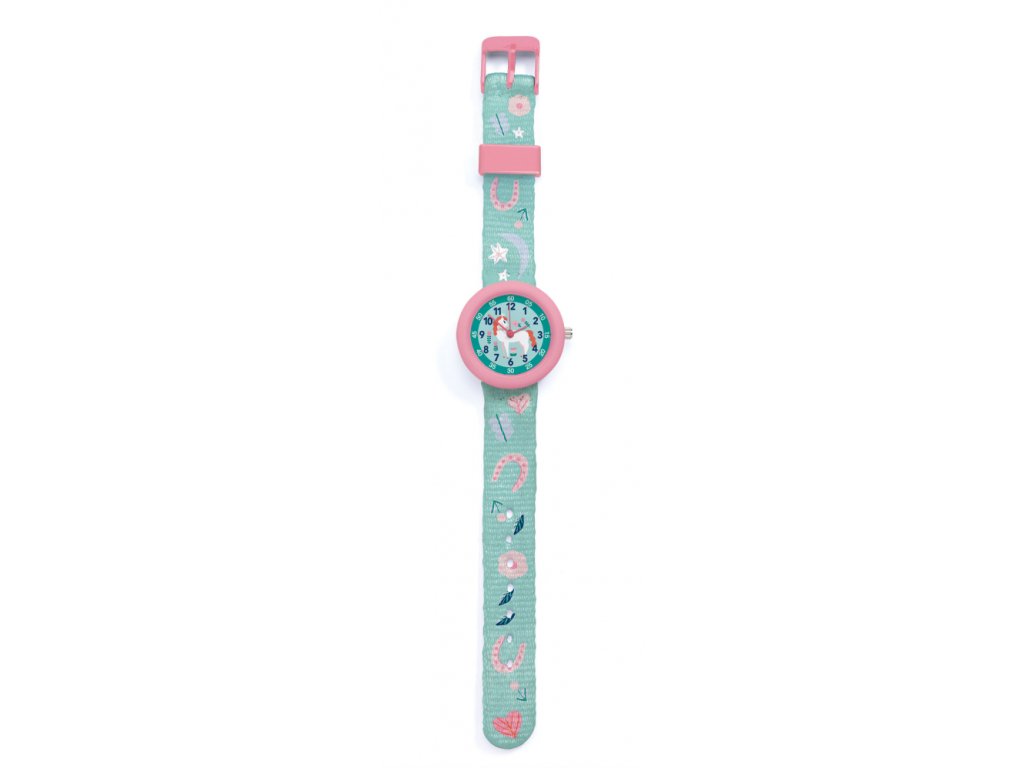 Hodinky s motívom koníka sú krásny a praktický doplnok pre deti, ktoré sa začínajú učiť určovať čas. Ciferník je navrhnutý tak, aby bol prehľadný a dobre čitateľný – s jasne označenými hodinami aj minútami, vrátane päťminútových intervalov.