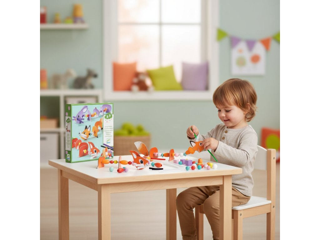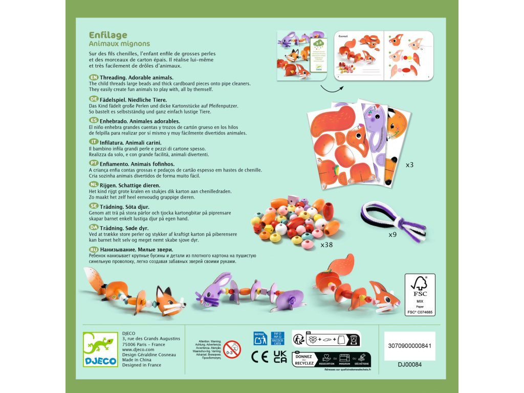 Navliekanie Roztomilé zvieratká Oživ 3 zvieratká: navliekaj drevené korálky a dieliky z pevného kartónu na ženilkuNavliekanie korálok – Roztomilé zvieratká je tvorivá sada, v ktorej deti postupne skladajú a navliekajú dieliky tak, aby vznikli 3 milé zvieratká.Používajú drevo (korálky), pevný predrezaný kartón a chlpaté drôtiky (ženilky) – výsledok je priestorový, hravý a každý model sa dá trochu „vymixovať“ podľa vlastnej fantázie.Rýchly prehľad odporúčaný vek: od 3 rokov (cca do 6 rokov) čo deti vytvoria: 3 zvieratká z navliekaných dielikov materiály: drevené korálky + dieliky z hrubého kartónu + chlpaté drôtiky rozvoj: jemná motorika, koordinácia oko–ruka, tvorivosť zodpovedná výroba: papier/kartón FSCObsah balenia 3 kartónové dosky s dielikmi na vytlačenie chlpaté drôtiky (ženilky): podľa zdrojov 6 ks alebo 9 ks drevené korálky: podľa zdrojov 39 ks alebo 38 ks 1 farebný obrázkový návod (len ilustrácie)Ako to funguje Vytlačte kartónové dieliky z dosiek. Vyberte si zvieratko (alebo kombinujte dieliky podľa seba). Navliekajte korálky a kartónové prvky na chlpatý drôtik. Dotvarujte a dolaďte detaily – vznikne vlastné „zvieratko“.Pre koho je pre deti, ktoré baví navliekanie a skladanie z dielikov ako tvorivá aktivita bez farieb – ideálna na pokojné sústredenie pre malých tvorcov, ktorí radi vymýšľajú vlastné kombinácie