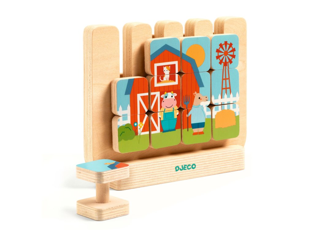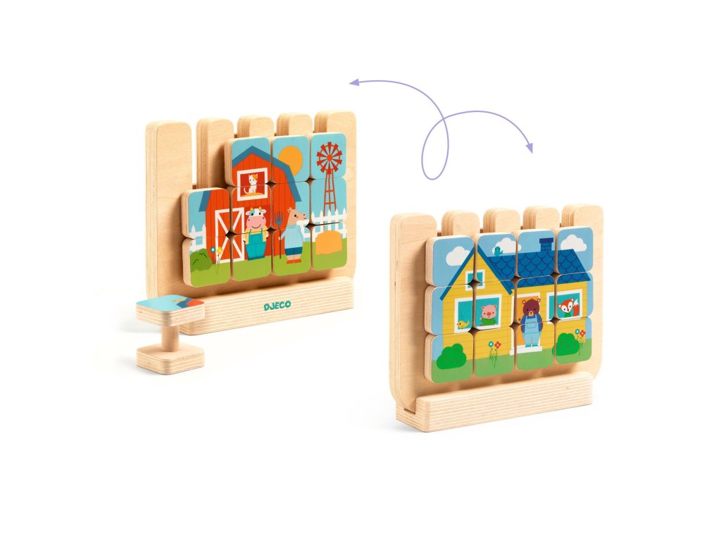Djeco Obojstranné drevené puzzle Casamix 12 ks