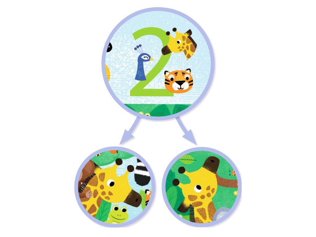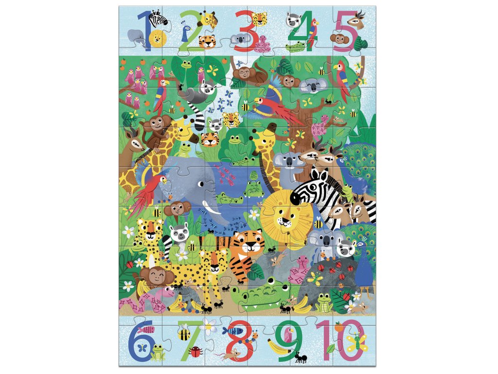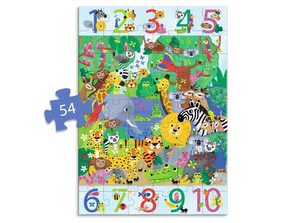 Obrovské vzdelávacie puzzle Džungľa 54 ks Džungľa, ktorá učí počítať: poskladaj obrovský obrázok a nájdi zvieratká 1 až 10-krátObrovské vzdelávacie puzzle Džungľa je výnimočné puzzle 3 v 1 – najprv deti poskladajú veľký džungľový obrázok a potom pokračujú v hre ako v „hľadačke“.Na okrajoch sú čísla 1 až 10 a malé obrázky, ktoré deti vyzývajú: nájdi v obrázku dané prvky presne toľkokrát, koľko ukazuje číslo.Výsledkom je hravé učenie počítania, pozorovania a trpezlivosti – bez pracovných listov.Rýchly prehľad odporúčaný vek: od 5 rokov počet dielikov: 54 rozmer zloženého puzzle: 50 × 70 cm rozvíja: počítanie 1–10, postreh, koncentráciu, jemnú motoriku typ hry: puzzle + hľadacia hra + počítaniePrečo si ho deti zamilujú obrovský formát – skladanie je veľké dobrodružstvo po dokončení sa hra nekončí: prichádza hľadačka a počítanie džungľová ilustrácia je plná detailov – ideálna na objavovanie a rozprávanie hrubý kartón vydrží opakované skladanieAko sa s tým hrá Poskladaj puzzle a prezri si celý džungľový obrázok. Vyber číslo 1–10 a pozri sa na malé obrázky pri ňom. V obrázku hľadaj prvky z okraja a spočítaj ich: nájdi ich presne toľkokrát, koľko ukazuje číslo.Obsah balenia 54× dielik obrovského puzzleTechnické parametre materiál: hrubý kartón (papier/kartón z udržateľných zdrojov) rozmer zloženého puzzle: 50 × 70 cm odporúčaný vek: od 5 rokov