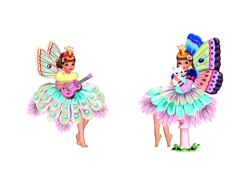 90 farebných obtlačkov s motívmi víl, kvietkov, motýľov a vtáčikov