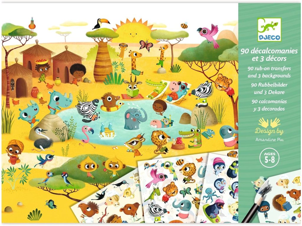 Obtlačky Zvieratká Set s veľkým množstvom obtlačovacích obrázkov. Obtláčanie je u detí veľmi obľúbené - jednoducho sa aplikuje a výsledkom sú krásne obrázky. Deti si nimi môžu doplniť svoje kresby, alebo nimi ozdobiť rozličné predmety. Zvieratká čakajú, aký príbeh im vytvoríš. Vytvárajte s obrázkami svoje vlastné príbehy zvieratiek na púšti, savane a severnom póle. Balenie obsahuje obtlačovacie obrázky a 3 rôzne pozadia, ktoré si malý umelec podľa vlastnej fantázie dotvorí. Poskytujú možnosť rozvíjať jemné motorické zručnosti a kreativitu.