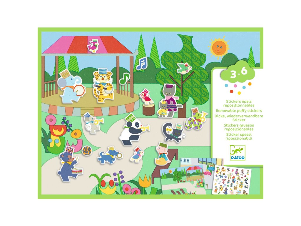 Odnímateľné samolepky Hudobný sprievod Oživ hudobný sprievod: nalepuj, prelepuj a vymýšľaj nové príbehyOdnímateľné samolepky – Hudobný sprievod sú kreatívna sada, vďaka ktorej si deti vytvoria vlastné veselé scény plné hudby. V balení nájdu 2 veľké ilustrované pozadia, ktoré môžu dopĺňať a meniť pomocou opakované použiteľných „nafúknutých“ (puffy) samolepiek.Samolepky sa dajú jednoducho odlepovať a znovu nalepovať, takže dieťa môže sprievod zakaždým usporiadať inak – raz pochoduje kapela, inokedy sa pridajú diváci, nástroje a ďalšie detaily. Hrubšie samolepky sú príjemné na uchopenie a skvelo sa hodia aj pre menšie detské ruky.Pre koho je vhodná: odporúčaný vek: 3 – 6 rokovObsah balenia 2 veľké ilustrované predlohy (cca 21 × 29,5 cm) 30 opakovane použiteľných hrubých puffy samolepiek