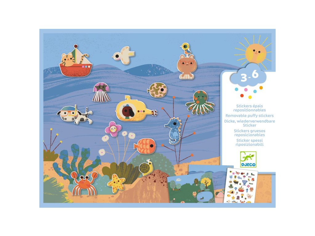 Odnímateľné samolepky Leto Letné dobrodružstvá na dosah: nalepuj, prelepuj a vytváraj vlastné prázdninové scényOdnímateľné samolepky – Leto sú tvorivá sada, s ktorou si deti poskladajú veselé letné príbehy – pri mori aj na vidieku. V balení nájdu 2 veľké ilustrované pozadia, ktoré môžu oživiť pomocou opakované použiteľných hrubých „nafúknutých“ (puffy) samolepiek.Samolepky sa dajú ľahko odlepovať a znovu nalepovať, takže dieťa môže scénu stále meniť: raz je to deň na pláži, inokedy piknik v prírode alebo prázdninový výlet plný zvieratiek a drobných detailov. Hrubšie samolepky sú príjemné na uchopenie a skvelo sa hodia aj pre menšie detské ruky.Pre koho je vhodná: odporúčaný vek: 3 – 6 rokovObsah balenia 2 veľké ilustrované predlohy (cca 21 × 29,5 cm) 30+ opakovane použiteľných hrubých puffy samolepiek