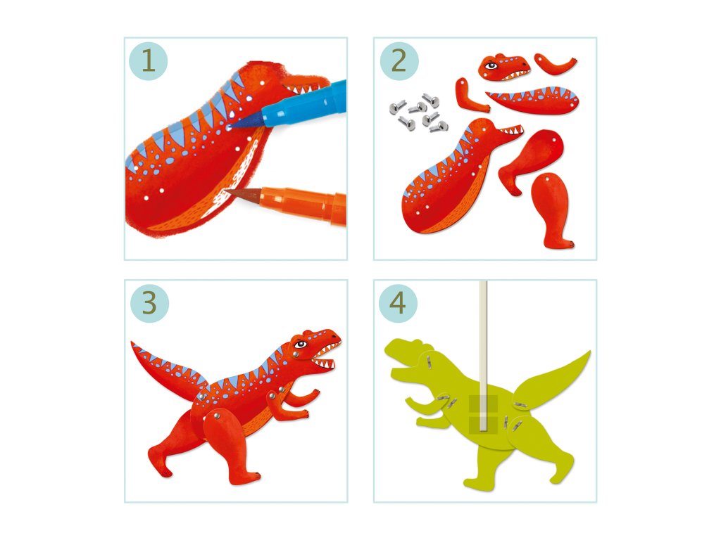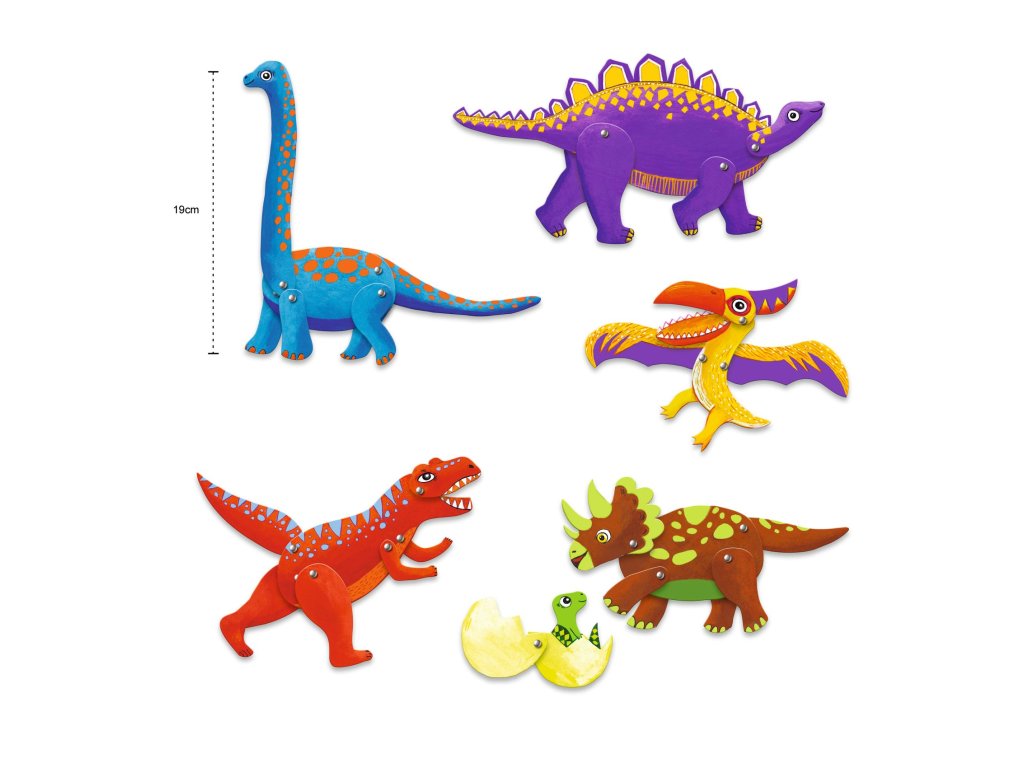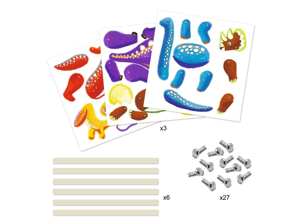 Papierové postavičky Dinosaury Vyfarbi, vystrihni a rozhýb dinosaury: vytvor si 6 papierových bábok s pohyblivými končatinamiPapierové postavičky Dinosaury sú kreatívna sada, v ktorej deti najprv vyfarbia predtlačené dieliky, potom ich vylomia z kartónu a poskladajú pomocou spojovacích „špendlíkov“ tak, aby sa dinosaury dali hýbať.Nakoniec pridajú drevené vodiace tyčky a postavičky ožijú – ideálne na divadielko, hranie príbehov aj rozvoj šikovných rúk.Rýchly prehľad odporúčaný vek: od 6 rokov rozvíja: jemnú motoriku, presnosť, kreativitu, predstavivosť čo deti vytvoria: 6 pohyblivých dinosaurových postavičiek (cca 15 cm)Prečo si ju deti zamilujú kombinuje vyfarbovanie aj skladanie – tvorenie má viac krokov a výsledok stojí za to pohyblivé končatiny robia z figúrok hračku, nie len obrázok postavičky sú skvelé na divadielko a rozprávanie príbehovAko sa s tým tvorí Vyfarbi dieliky dinosaurov podľa seba. Vylom diely z predrezaných šablón. Pospájaj časti spojkami tak, aby sa mohli hýbať. Pridaj vodiace tyčky a zahraj sa s postavičkami.Obsah balenia 3× kartónový hárok s predrezanými dielikmi na vyfarbenie (cca 20 × 20 cm) 27× spojka (brads) na pospájanie dielov 6× drevená tyčka na vedenie postavičky 6× priehľadná nálepka 1× obrázkový návod krok za krokomTechnické parametre vek: od 6 rokov rozmer balenia: približne 22 × 23 cm materiál: papier/kartón, drevo, kovové spojky
