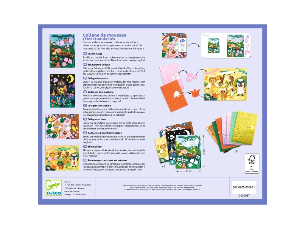Penové koláže Trblietavé oslavy Trblietavá oslava na štyroch obrázkoch: nalep penové dieliky a nechaj scénu zažiariťPenové koláže – Trblietavé oslavy sú kreatívna sada, v ktorej deti vytvoria 4 rozprávkovo slávnostné obrázky lepením metalických a trblietavých penových samolepiek.Je to hravá „mozaika“ bez farieb a bez neporiadku – dieťa len vyberá správne tvary a postupne dopĺňa scénu, až kým sa obrázok úplne nerozžiari.Rýchly prehľad odporúčaný vek: od 3 rokov (cca do 6 rokov) čo deti vytvoria: 4 veľké obrázky na doplnenie materiál: penové samolepky s metalickým a trblietavým efektom rozvoj: jemná motorika, presnosť, sústredenie, farby a tvaryObsah balenia 4 veľké obrázky na doplnenie 8 hárkov penových samolepiek (metalické a trblietavé) 1 obrázkový návod krok za krokomAko to funguje Dieťa si vyberie obrázok a riadi sa vizuálnou predlohou v návode. Vyberá penové samolepky a lepí ich na určené miesta. Postupne doplní detaily – a scéna získa trblietavý efekt.Pre koho je pre deti, ktoré milujú samolepky a tvorenie s rýchlym výsledkom ako darček na tvorivé popoludnie alebo „oslávnu“ aktivitu pre rodičov, ktorí chcú pekné tvorenie bez farieb a veľkého upratovania