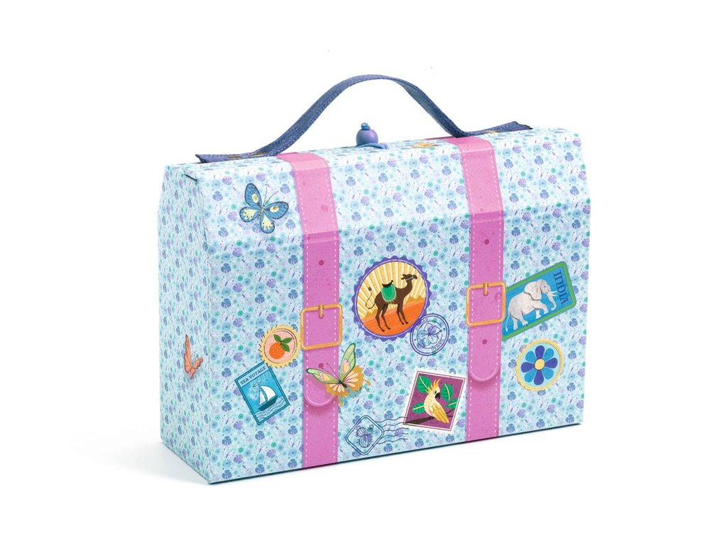 Objavte kufríkové puzdro Marie od DJECO z kolekcie LOVELY PAPER. Tento dizajnový a ľahko prenosný „kufrík“ je vyrobený z pevného kartónu a disponuje jedinečným zapínaním s drevenou guľôčkou a gumičkou.
