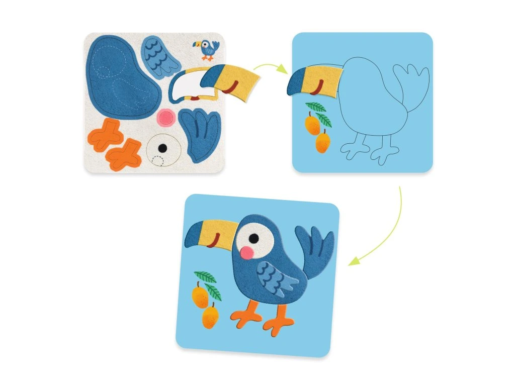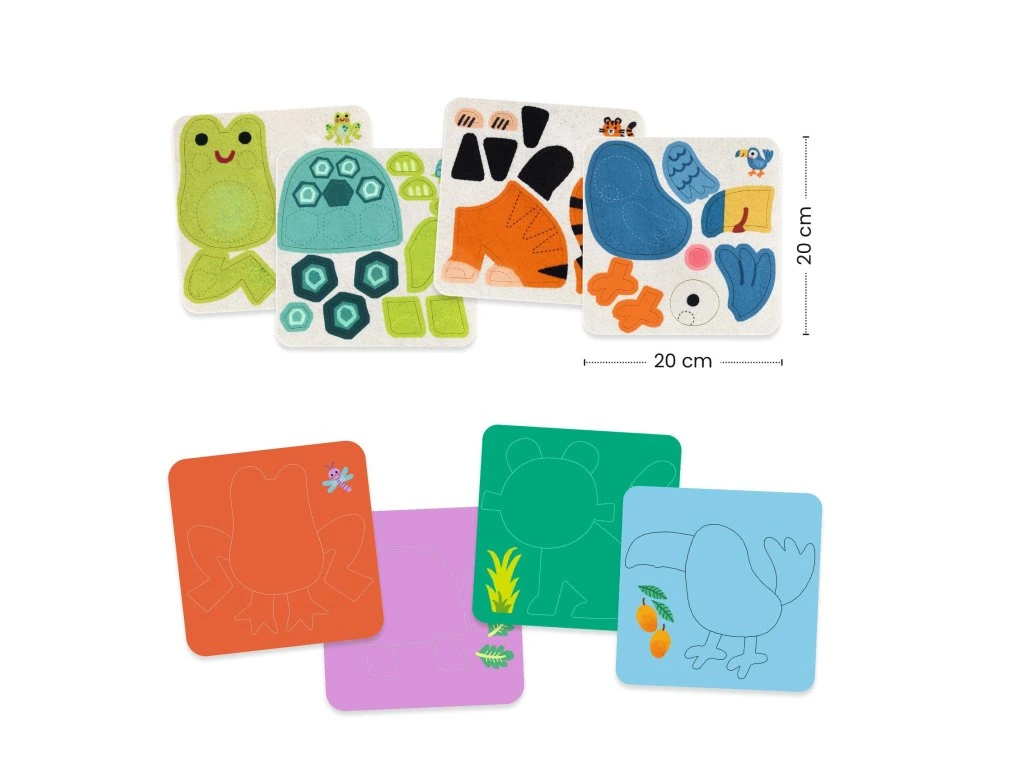 Plstené obrázky Mäkké zvieratká Prvé tvorenie pre najmenších: nalepuj mäkké plstené dieliky a vytvor 4 roztomilé obrázkyPlstené obrázky – Mäkučké zvieratká sú jednoduchá kreatívna aktivita, pri ktorej dieťa lepí predvystrihnuté plstené samolepky na ilustrované podklady a postupne tak dotvára zvieratká.Plstené dieliky sú príjemné na dotyk, dobre sa držia v malých rukách a vďaka jasne naznačeným miestam na lepenie zvládnu tvorenie aj menšie deti takmer samostatne.Obsah balenia 4× ilustrovaný podklad na dotvorenie (obrázok) predvystrihnuté plstené samolepky vo viacerých farbách (viac ako 100 ks) 1× obrázkový návod krok za krokomPrečo je to skvelá aktivita odporúčaný vek: od 18 mesiacov mäkučké plstené dieliky: príjemný hmatový zážitok jednoduché lepenie: bez nožníc, bez lepidla, menej neporiadku rozvoj zručností: jemná motorika, sústredenie, rozlišovanie tvarov a farieb hotové obrázky: pekná dekorácia do detskej izby