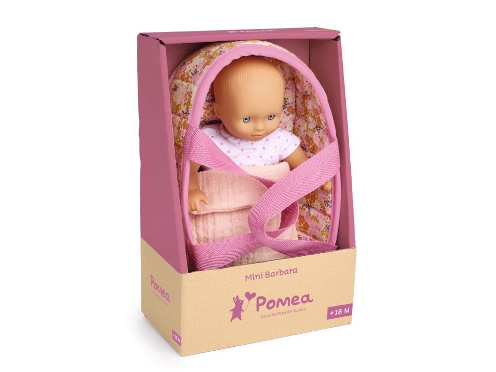 Pomea Bábika Mini BarbaraMalá bábika pre veľa zábavy a kreatívnej hryPomea – bábika Mini Barbara je roztomilá textilná bábika, ktorá je ideálna pre deti na imaginatívnu hru na starostlivosť. Mini Barbara je menšia veľkosťou, takže ju deti ľahko držia a nosia so sebou.Prečo si vybrať bábiku od Djecovhodná pre deti od 18 mesiacovmäkká, príjemná textilná bábikaperfektná pre hru na starostlivosť a rolové hryjednoduchá na uchopenie a prenášanierozširuje možnosti hry s bábikami zo série Pomeaskvelý darček pre malé detikošík pre bábiku sa dá prať v práčke pri teplote 30 °CObsah baleniabábika Mini Barbarakošíkdekavankúš