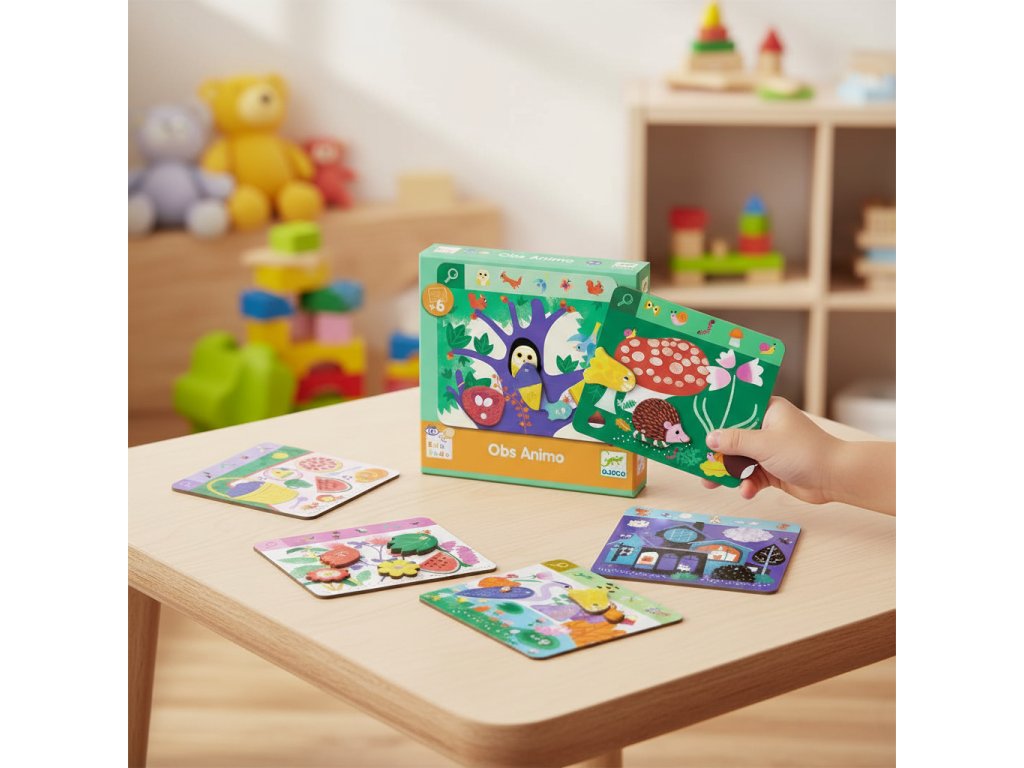 Prvá hľadacia hra Obs Animo Hľadaj, otáčaj a objavuj: prvá „hľadaj a nájdi“ hra s pohyblivými kolieskamiPrvá hľadacia hra Obs Animo je interaktívna pozorovacia hra pre najmenších, ktorá spája hľadanie detailov s jednoduchou manipuláciou.Dieťa má pred sebou veľký obrázok a v hornej časti vidí, čo má nájsť. Niektoré prvky sa dajú objaviť aj vďaka otáčaniu pohyblivých častí – hra tak prirodzene podporuje zvedavosť aj sústredenie.Rýchly prehľad odporúčaný vek: 3 – 6 rokov počet hráčov: 1 (ideálne aj ako spoločná aktivita s dospelým) rozvíja: pozorovanie, zrakové rozlišovanie, jemnú motoriku, koncentráciu v balení: 6 hracích dosiek s pohyblivými časťamiPrečo si ju deti zamilujú každá doska je plná detailov – dieťa má radosť z každého „našla som!“ pohyblivé kolieska motivujú skúšať, otáčať a objavovať skryté prvky hravo učí rozlišovať tvary, farby a predmety krátke úlohy sú ideálne pre malé deti – bez stresu, len príjemné sústredenieAko sa s tým hrá Polož pred dieťa jednu hraciu dosku a spolu si pomenujte obrázky v hornej časti. Dieťa hľadá rovnaké prvky vo veľkej scéne – pozorovaním alebo otáčaním pohyblivých častí. Keď nájde všetky prvky, vyberte ďalšiu dosku a pokračujte novou scénou.Obsah balenia 6× ilustrovaná hracia doska s pohyblivými časťamiTechnické parametre typ: pozorovacia (hľadaj a nájdi) hra materiál: papier a kartón rozmery jednej dosky: cca 16 × 18 cm rozmery balenia: cca 21,5 × 21,5 × 4 cm