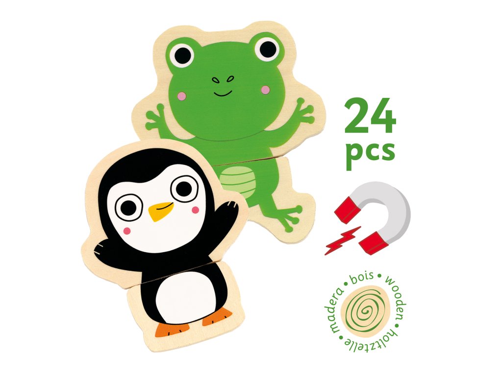 Puzzle drevené magnetky ZvieratkáJednoduché skladanie zvieratiek pomocou drevených magnetov pre malé detiDrevené magnetické zvieratká sú jednoduchá a zábavná magnetická hračka pre deti. Deti si skladajú farebné zvieracie tvary na magnetickú dosku, kombinujú dieliky a vytvárajú vlastné scénky. Magnetické puzzle dieliky sa ľahko pripínajú a presúvajú, takže hra je vhodná aj pre malé ruky. Tento set podporuje jemnú motoriku, predstavivosť a tvorivé hranie doma či na cestách.Prečo si deti túto hru zamilujúfarebné drevené magnety so zvieratkamiľahké skladanie a premiestňovanierozvoj motoriky a kreativityvhodné pre doma aj výletyObsah balenia24 kusov magnetov v baleníVhodné pre deti od 2 rokov