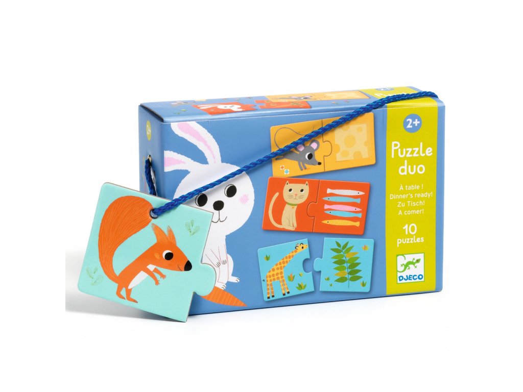 Puzzle duo Jedlo je hotovéPrvé párovacie puzzle pre deti – kto čo zje?Puzzle Duo – Jedlo je hotové! od značky Djeco sú jednoduché a hravé párovacie puzzle pre najmenšie deti. Úlohou dieťaťa je správne spojiť zvieratko alebo postavičku s jedlom, ktoré k nej patrí. Vznikajú tak logické a zrozumiteľné dvojice, ktoré deti ľahko pochopia a radi opakujú. Puzzle sú tvorené z 10 dvojdielnych skladačiek (spolu 20 dielikov) s pevnými a veľkými dielmi, ideálnymi pre malé detské ruky. Hra podporuje logické myslenie, slovnú zásobu aj jemnú motoriku a je skvelým prvým krokom k samostatnému skladaniu puzzle.Čo puzzle rozvíjajúlogické myslenie a pozorovaniejemnú motoriku a koordináciu ruka–okoslovnú zásobu a komunikáciupochopenie vzťahov a súvislostísamostatnosť pri hrePrečo si vybrať Puzzle Duo od Djecoideálne prvé puzzle pre detijednoduchý princíp párovaniapevné dieliky z kvalitného kartónuhravé ilustrácie typické pre Djecovhodné pre deti od 2 rokov