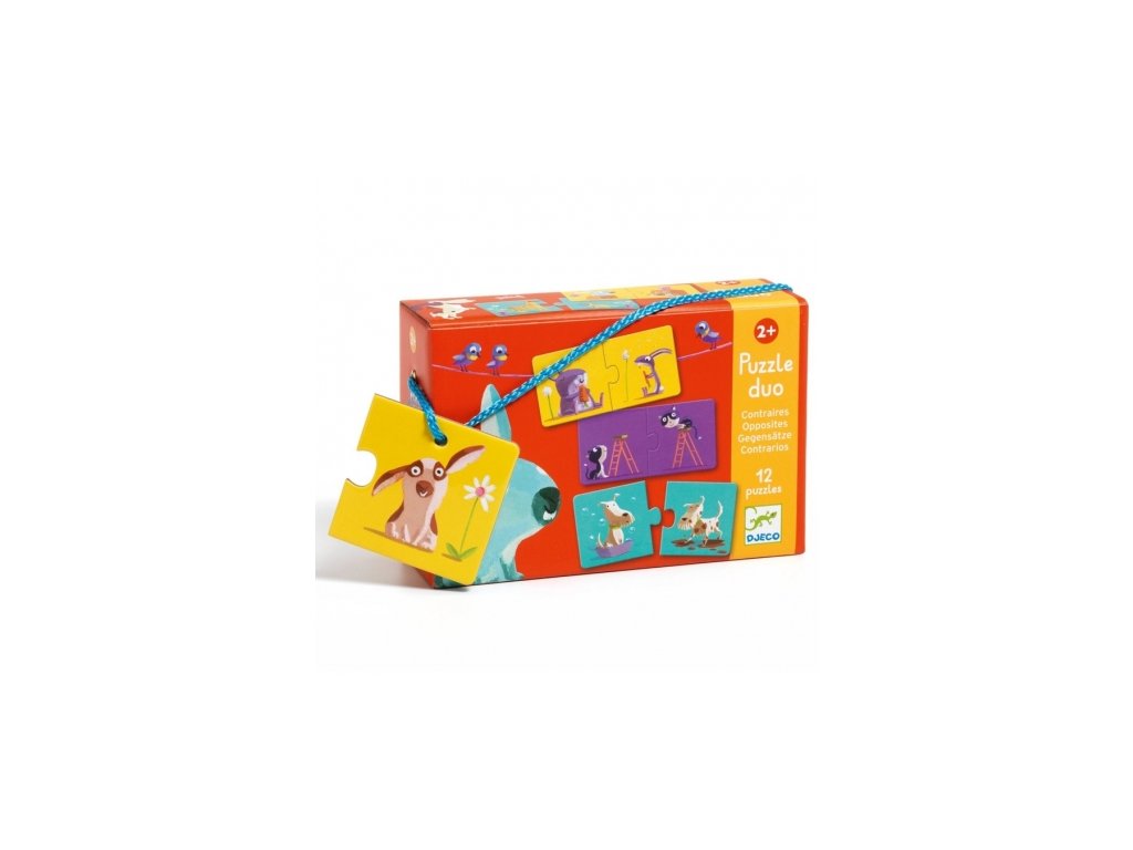 Puzzle duo Protiklady sú jednoduché edukačné puzzle pre najmenších, v ktorých deti skladajú dvojice s opačným významom. Každý obrázok vznikne z 2 dielikov – dieťa hľadá správnu dvojicu a skladá protiklady, ktoré pozná z bežného života (napríklad deň/noc, čisté/špinavé, hore/dole a podobne).
